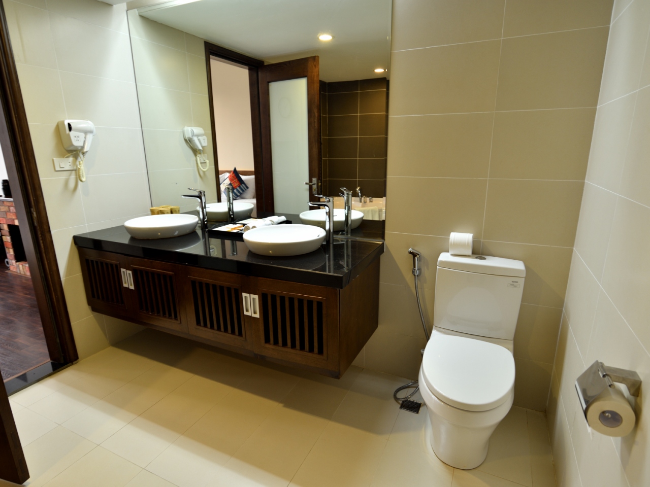 部屋は余裕のある広さでトイレが2つあり、バスタブも大きく、ベッドも程よい硬さでゆっくり眠れて旅の疲れが取れますよ。