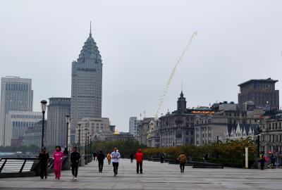 外灘(ワイタン / バンド)は地下鉄の南京東路駅から東へ歩いて10分位で行けます。黄浦江の向こうには浦東(プートン)。