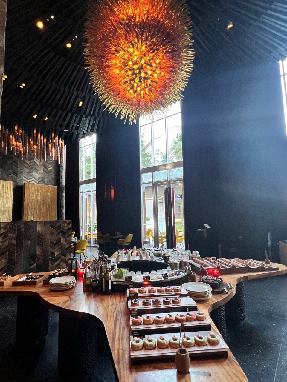 朝食はビュッフェ式、プールサイドバーにドリンクコーナーがありました。