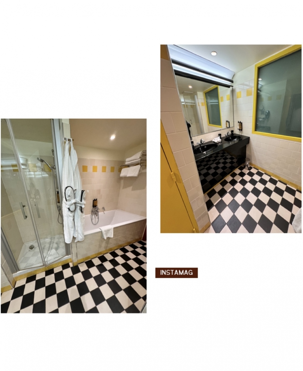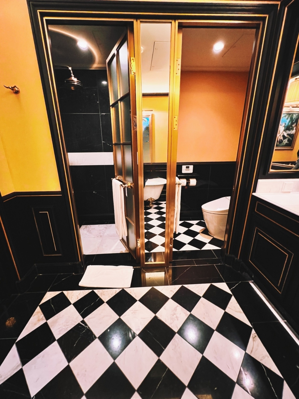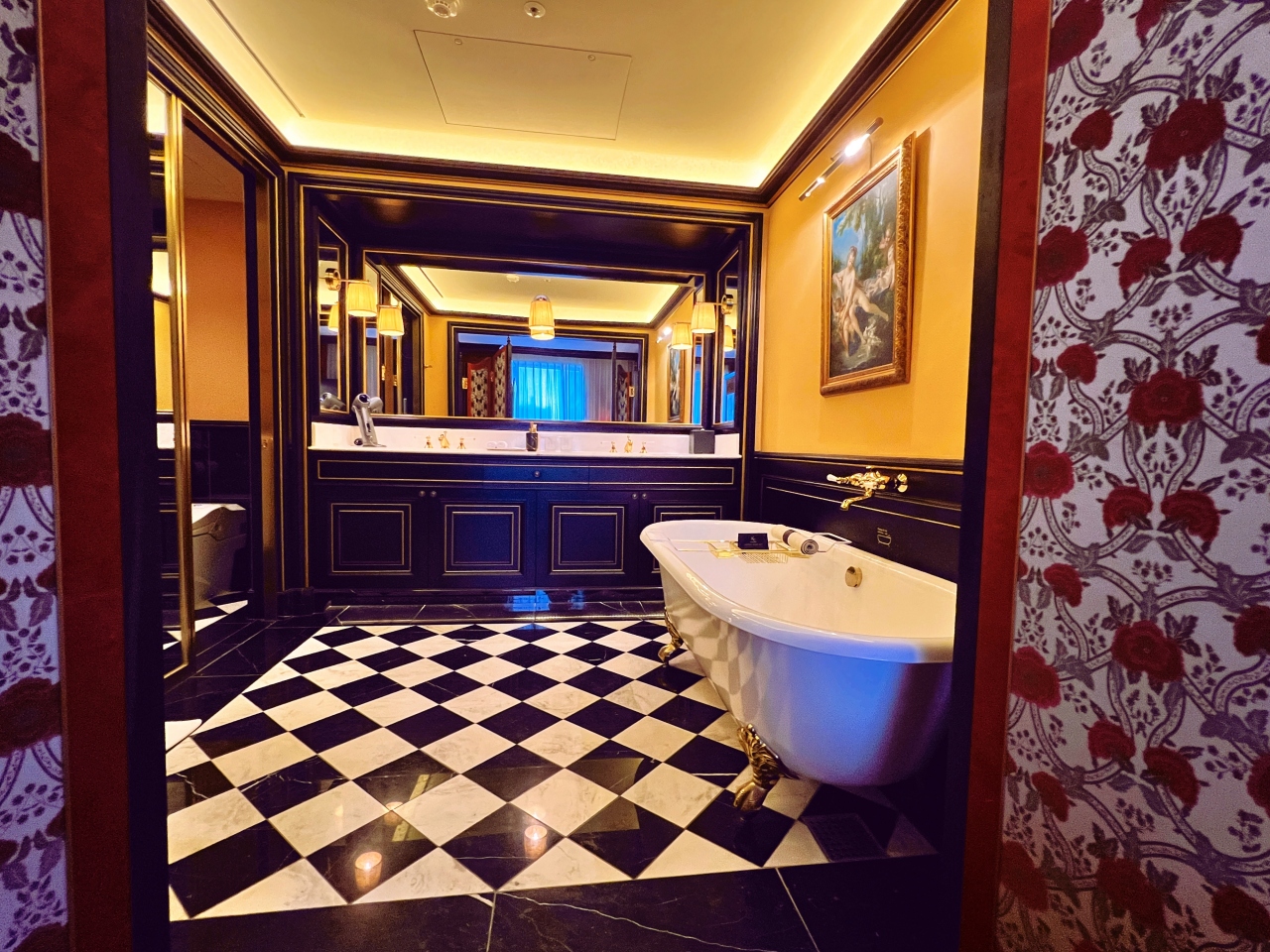 バスルームには絵画が飾られていたり、モノトーンなフロアと猫脚バスがカッコよかった!!