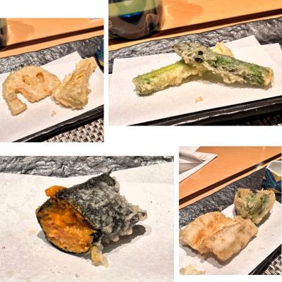 目の前で揚げてくれるサクサク天麩羅、美味しかった~