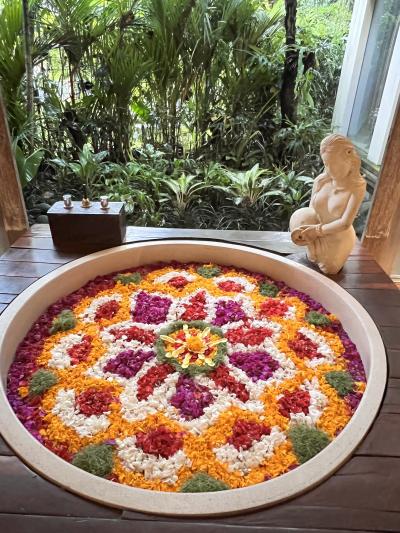 バリではフラワーバスをやってくれるスパが結構ありますが、このウダヤのスパではお花がホントにぎっしりと詰まっていて美しくアートしてくれるのでお薦めです。