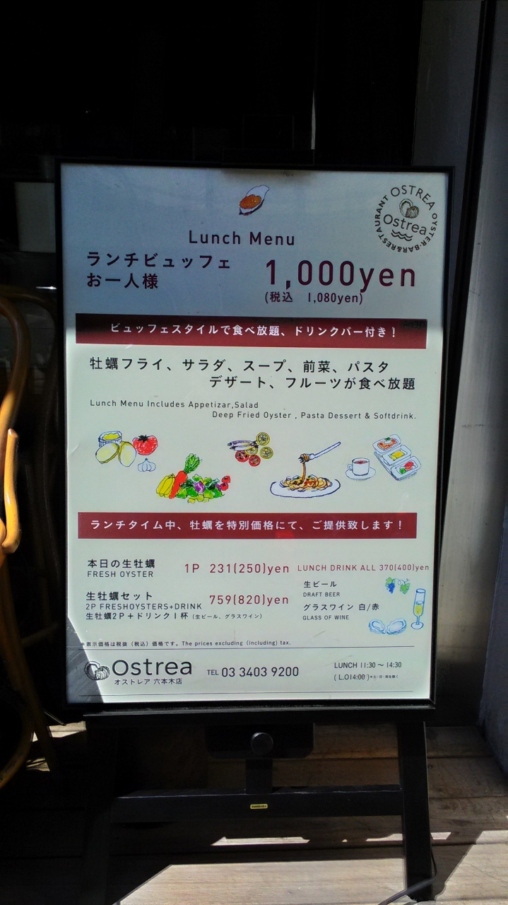 言わずと知れたオイスターバーのリーズナブルランチ。給料前にK超えは予算的に厳しいが、此処なら納得。