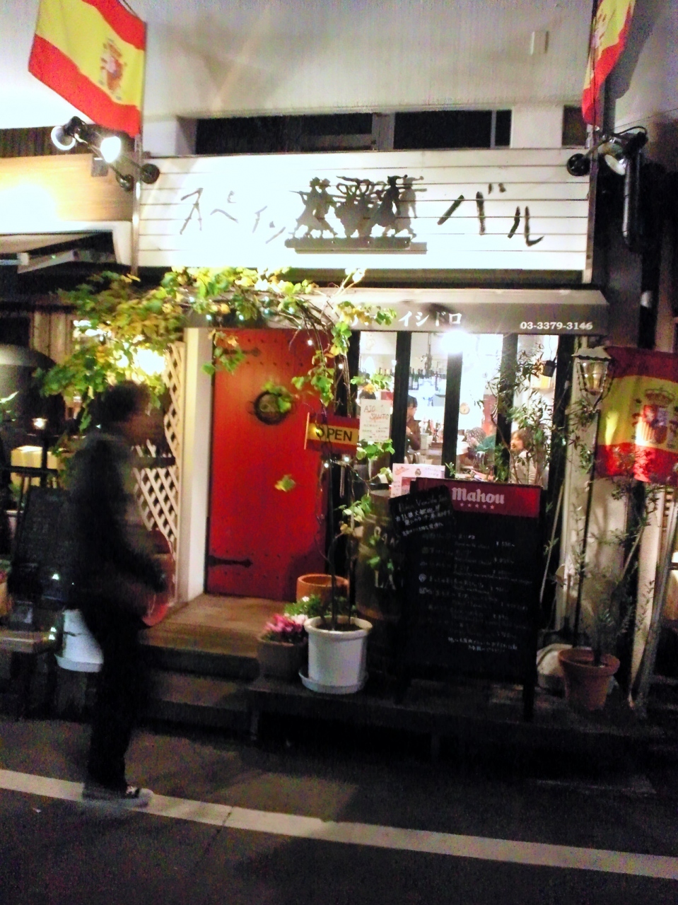 パエリアは時間がかかるので早めに注文、壁面の絵も有名人の直筆だとか。