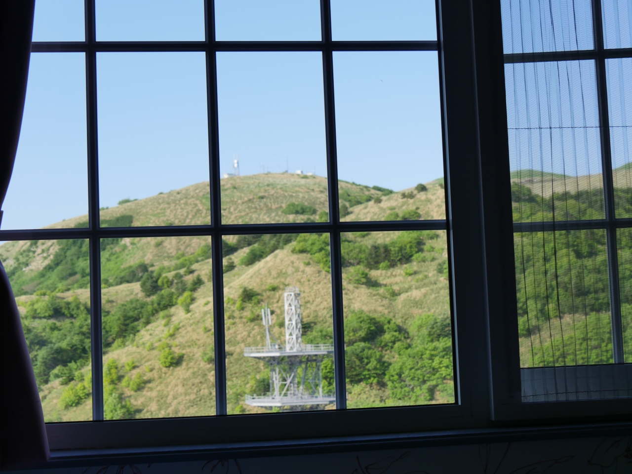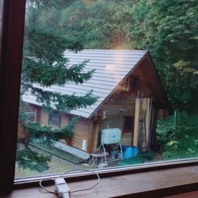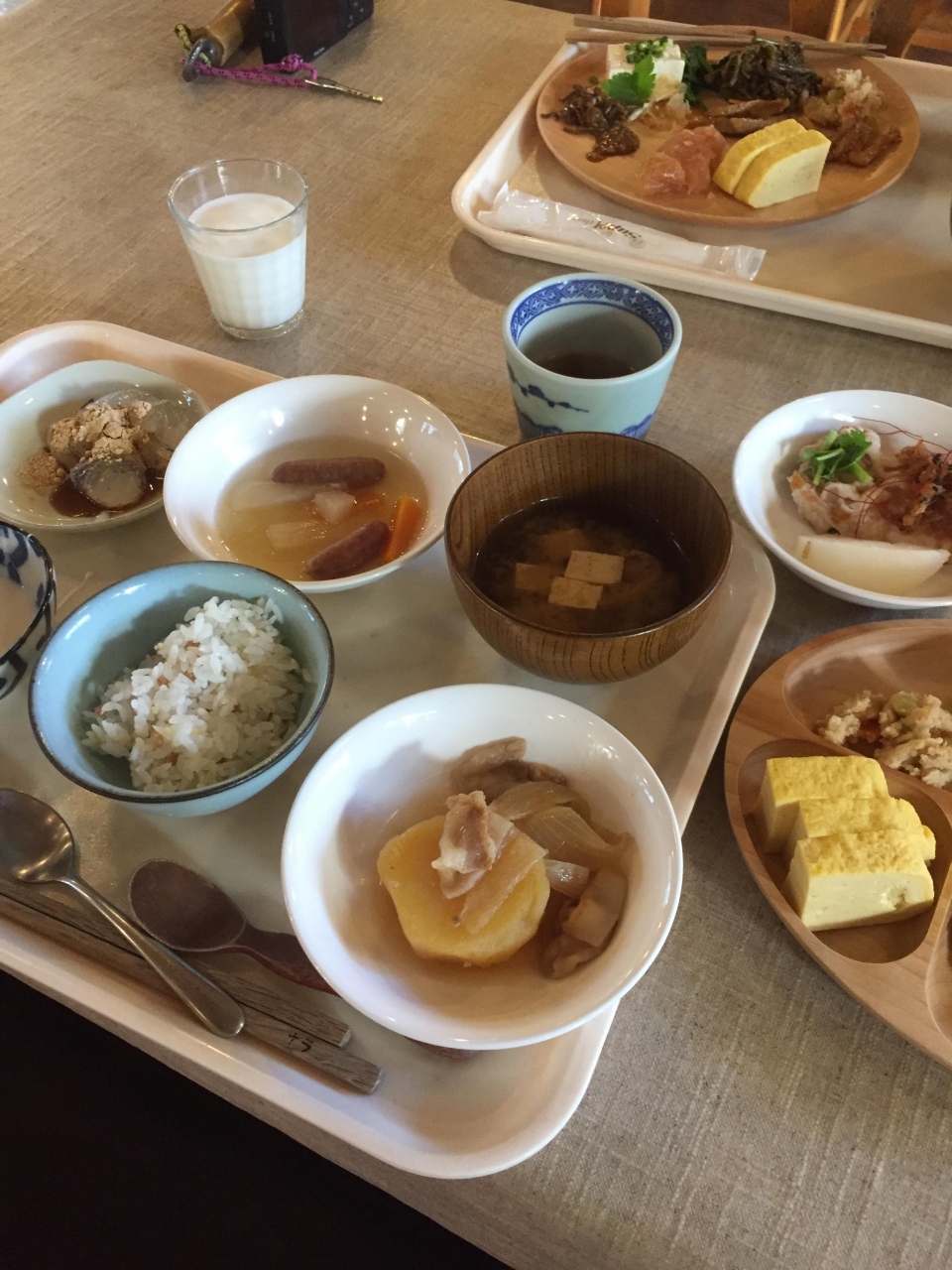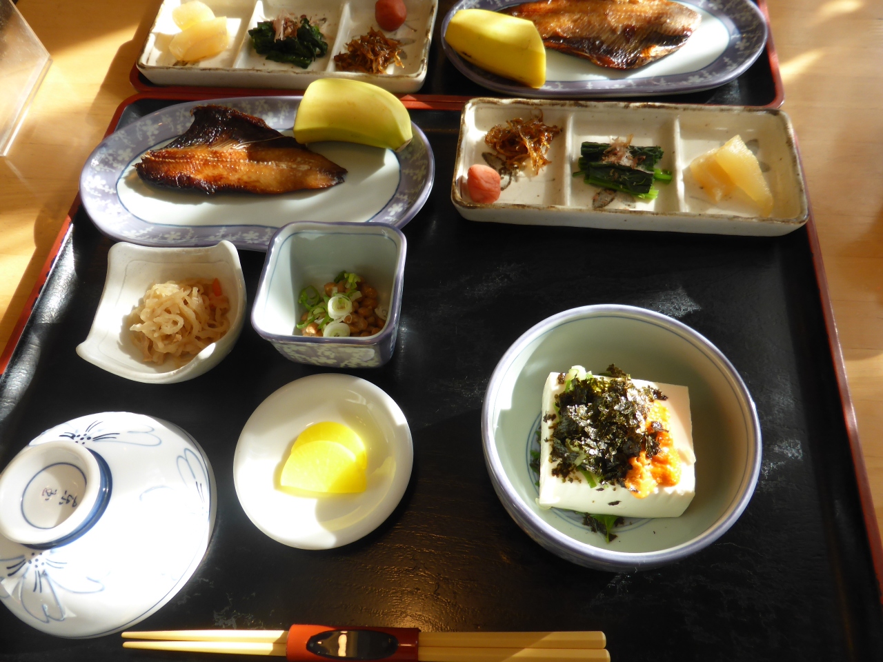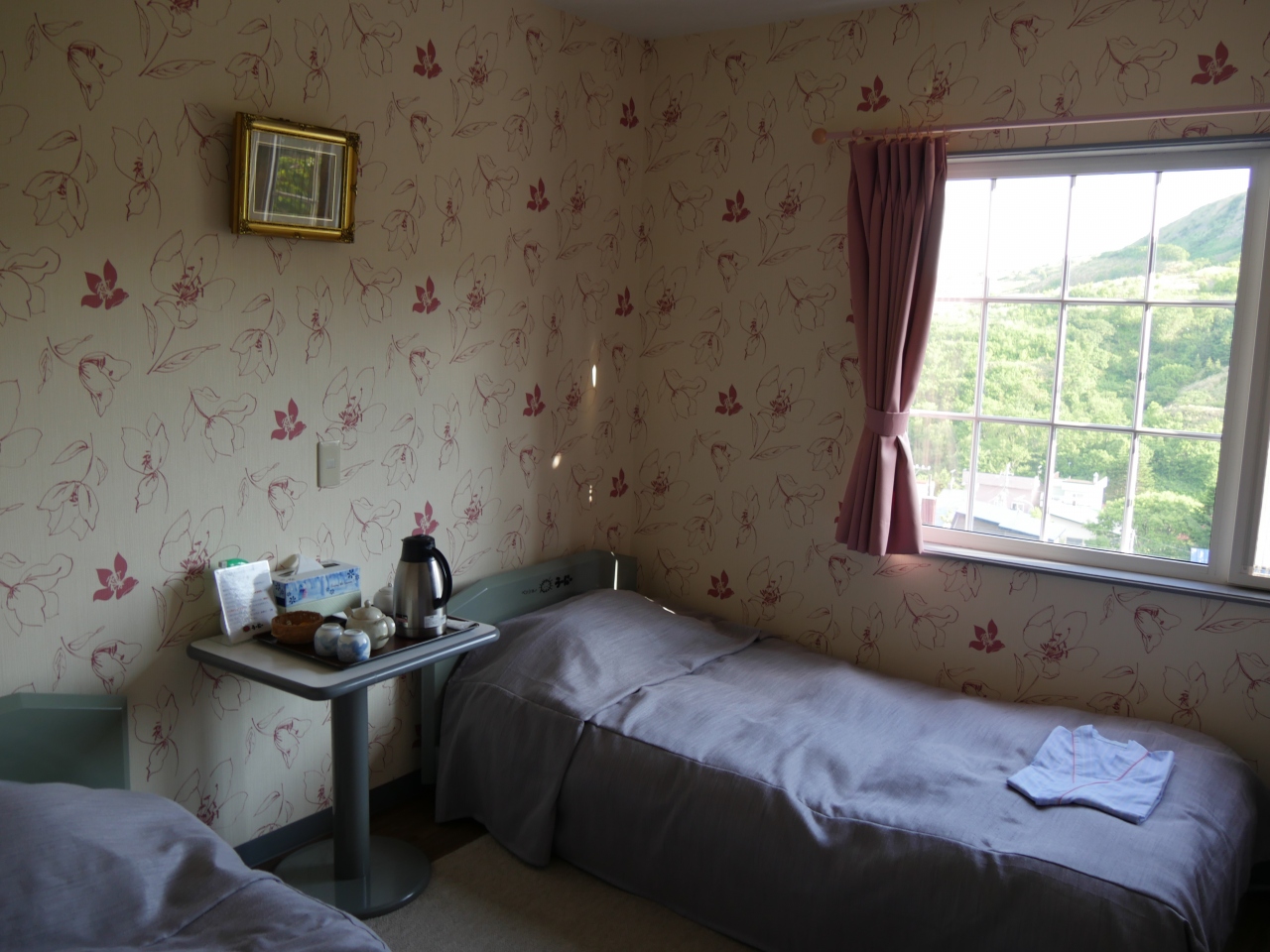 チェックイン時受け取ったお弁当が朝食、レンジで温めての朝ご飯、ロフトのベッドはセミダブルのツインで寝心地がよく、標高が高いので窓を開けておくと涼しくて快適。