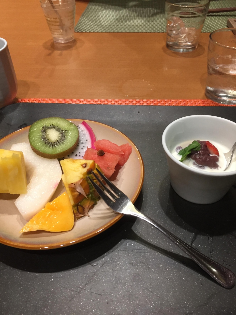 レストランの朝食ブッフェはいたって普通でした。スタッフのお姉さんたちのスタンバイ位置がテーブルが見えない場所でした。お皿をかたづけてもらえずちょっと困りました。