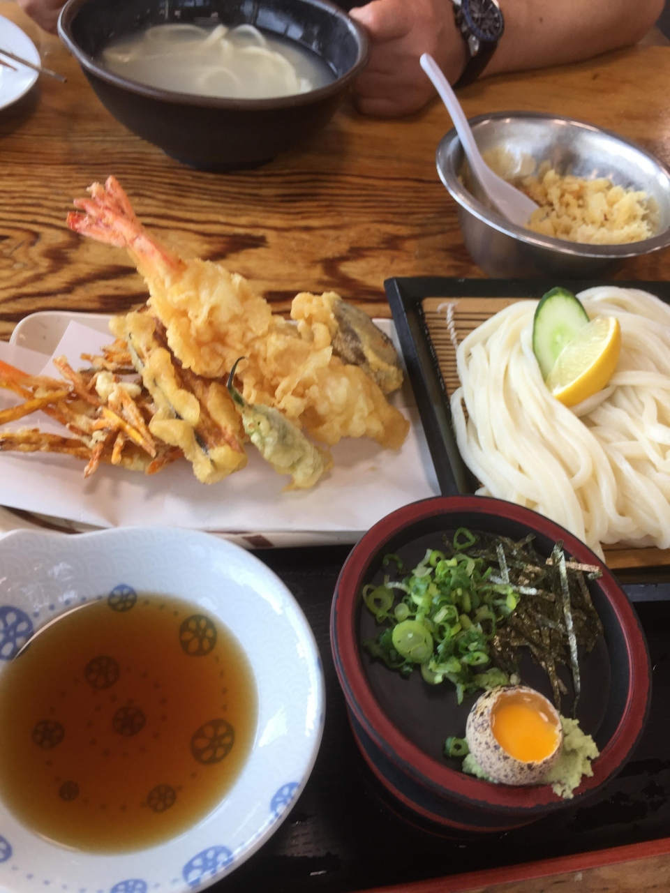 釜揚げうどんと冷たい天ぷらうどんを注文しました。ボリュームがあります。