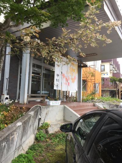 通年営業でスキー客が宿泊するそうで、洗濯機と乾燥機、ランドリースペースにはコミックとベンチがありました。食事は薪ストーブが赤々燃えるレストランでいただきました。