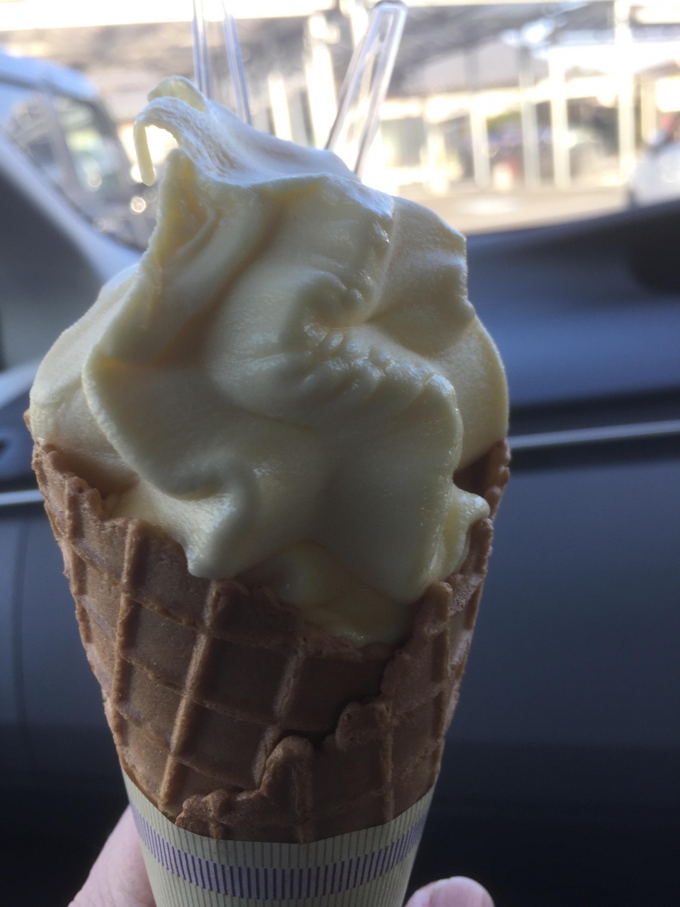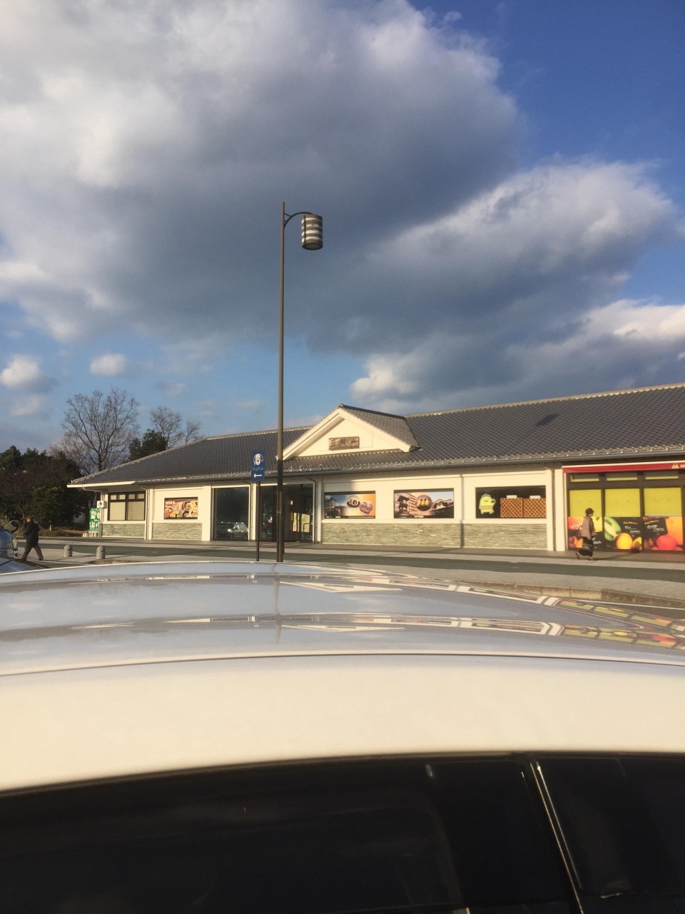 四国では大きなサービスエリアのうちの一つです。5年ぶりに立ち寄ると新しくなっていました。ソフトクリーム、パンなど購入しました。ちょっと強気の値段設定です。お土産が充実しています。見上げると、たぶん石鎚山?が雪をいただいていました。風光明媚な立地です。