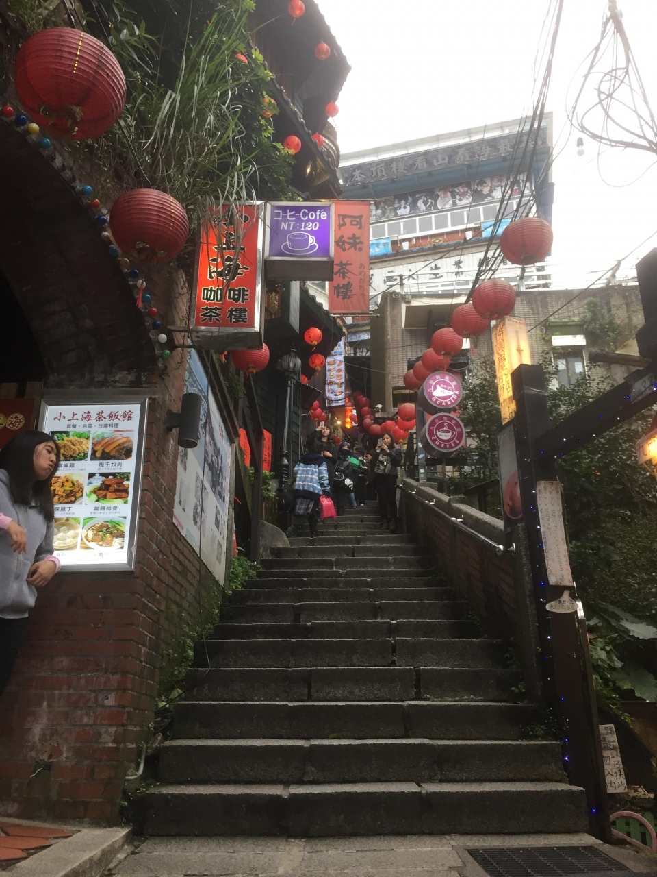 九分ツアーで訪れました。回転するテーブルでご一緒した皆さんと食事、お昼過ぎですいていました、前日の夜九分ツアーでのぞいたときはたくさんお食事中でした。