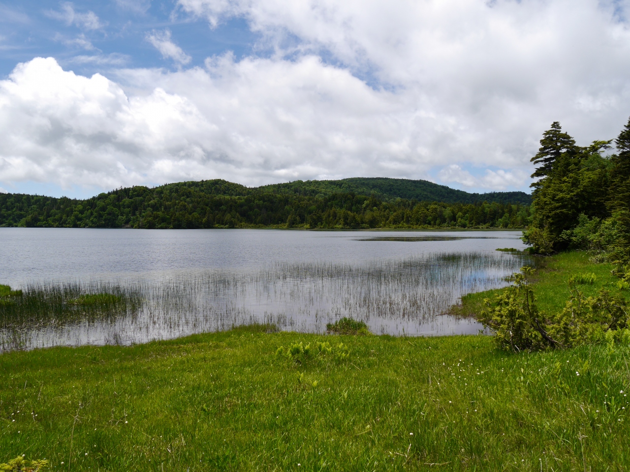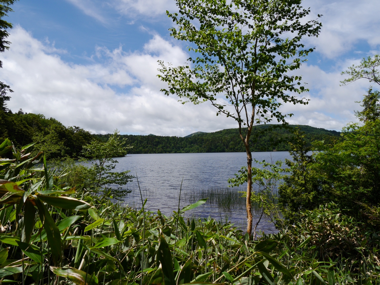 沼山峠から大江湿原をへて浅湖湿原に着きました。池塘群のむこうに尾瀬沼が見えます。見えかくれする尾瀬沼が、やがて沼尻で水に手をつけられるほど近くなります。沼のほとりで鳥のさえずりを聴きながらいつまでもいたかったけれど、宿泊する温泉小屋へと向かいました。再訪したい大好きな場所です。