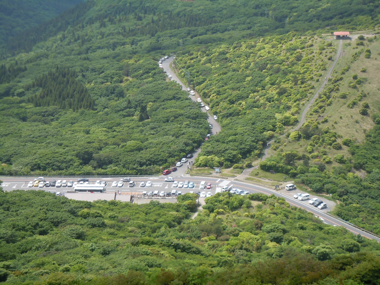 久住山登山のため駐車しました。6月の平日ですが駐車場は満車。路肩にとめました。軽食スペースがあり、お土産、おにぎりなど販売しています。清潔なトイレも完備しています。登山届けのポストもありました。ミヤマキリシマの季節は少しでも早めの到着が望ましいです。