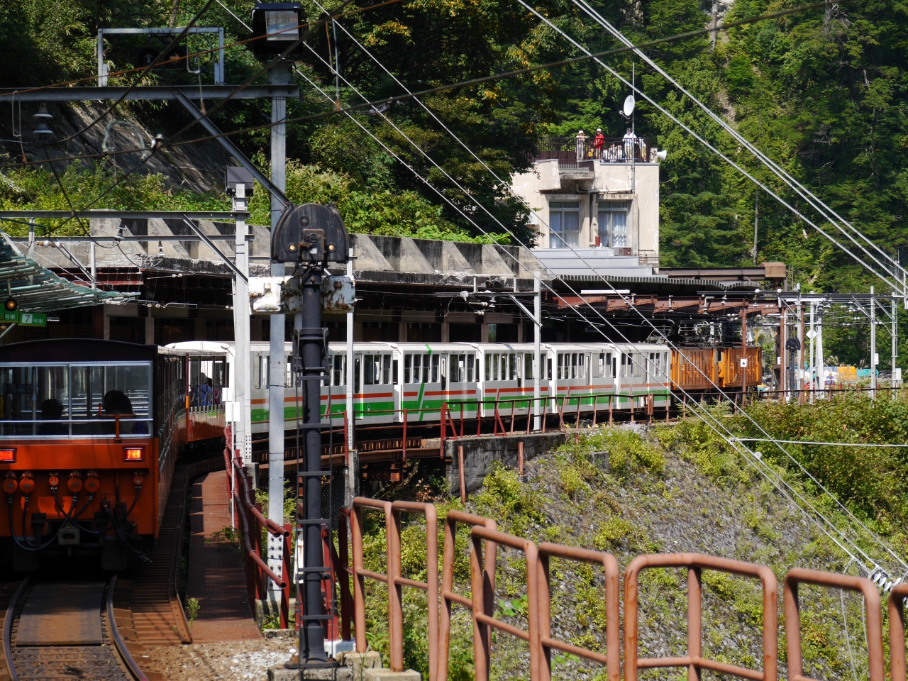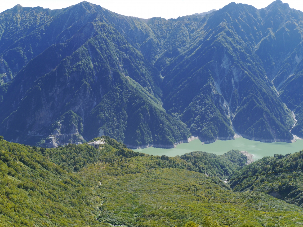 黒部湖の真上にのけぞるように山がそびえます。トロリーバスを降りるとそこは雄山を突っ切った岸壁の中腹の絶壁です。ここでしか見られない景色に感動しました。屋上展望台にはテーブルとイスがありお天気が良ければお弁当など絶景をおかずに食べることができます。