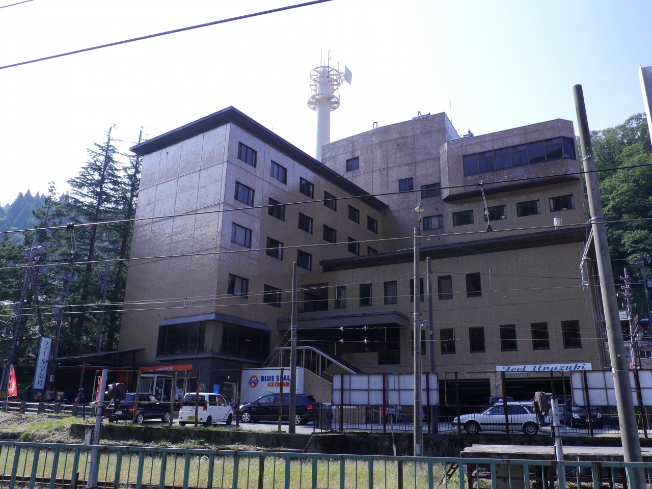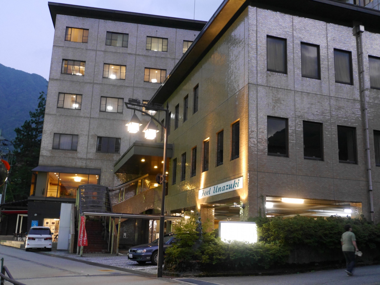 トロッコ電車の乗場に近く部屋からトロッコ電車が飽きるまでみられます。前泊、後泊どちらでも車をおかせてくれます。温泉は最上階にありゆかたはエレベーターの前に用意してくれています。設備はけっして新しくはないですが朝食は手作りがほとんどでおいしかったのでおすすめです。