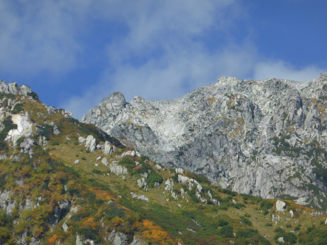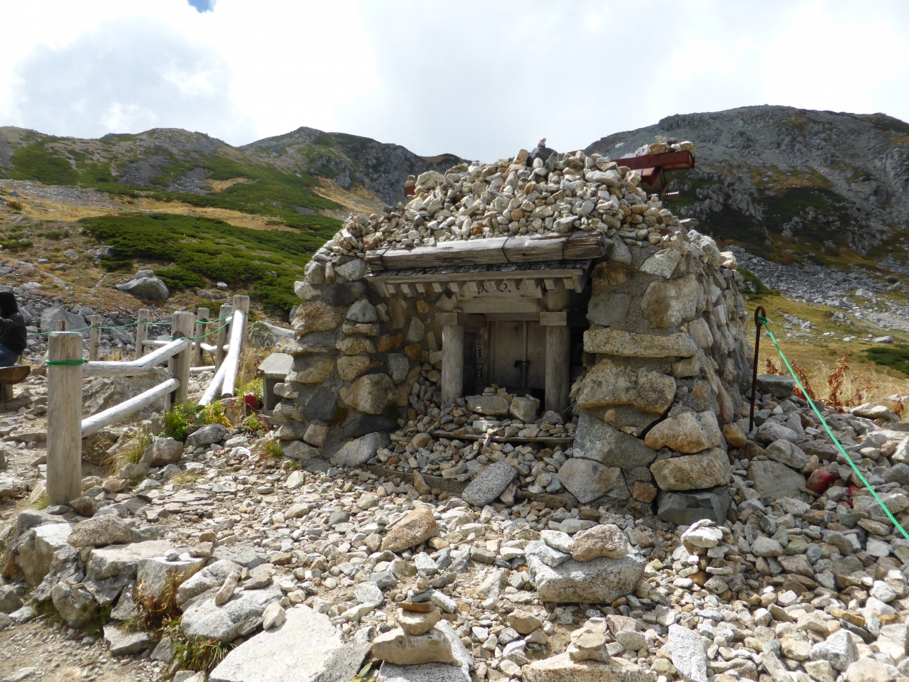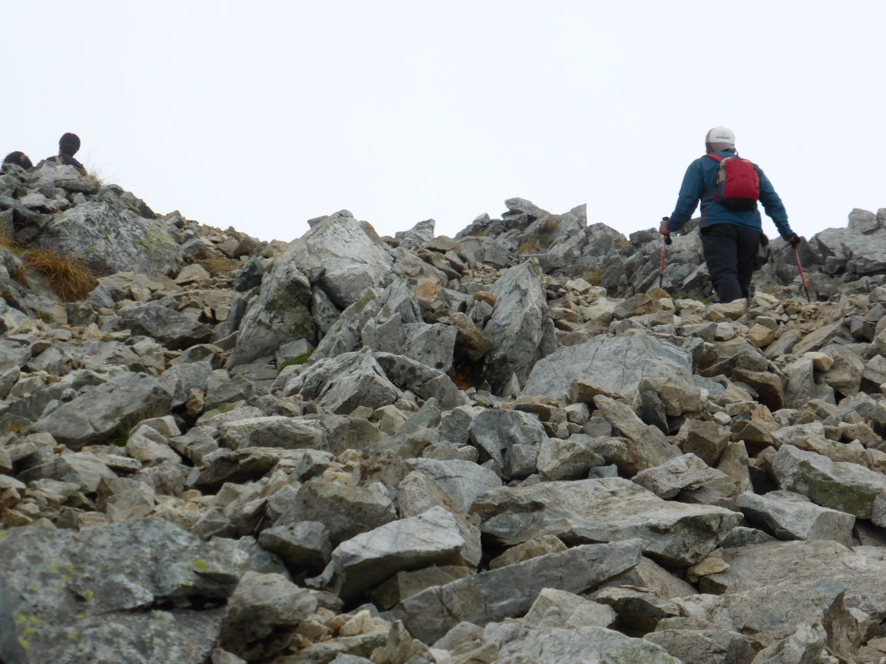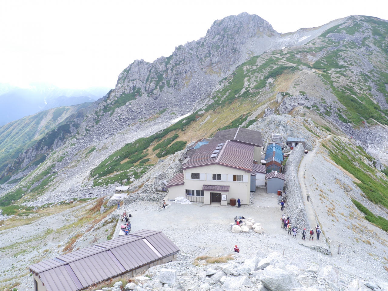 一ノ越山荘からが本格的な登山です。室堂ターミナルから遠目に見える白いところは大きな岩や小さな石のガレ場です。私にとってはこれが結構な難関でしたがガスの晴れ間から覗く絶景は見事なもので、苦しくてもまた来たいと思いました。頂上の雄山神社本社でお祓いをしていただき、お神酒も頂戴しました。平日でしたから、子供さんは見かけませんでしたが、70才代後半かなとおもうかたを幾人かお見かけしました。登山道は広く健脚の人は追い抜いていけるので気持ちが急くことはありませんでした。