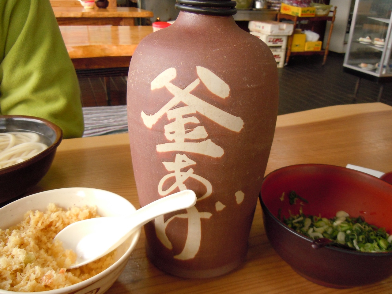 高速を降りてわざわざいくべし、あつあつのつゆ、ねぎ、てんかす、しょうが、が、まってます。