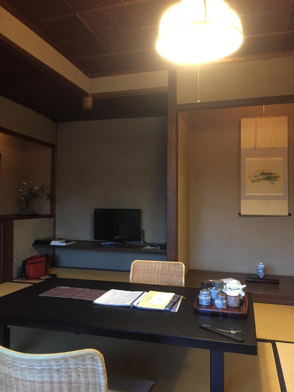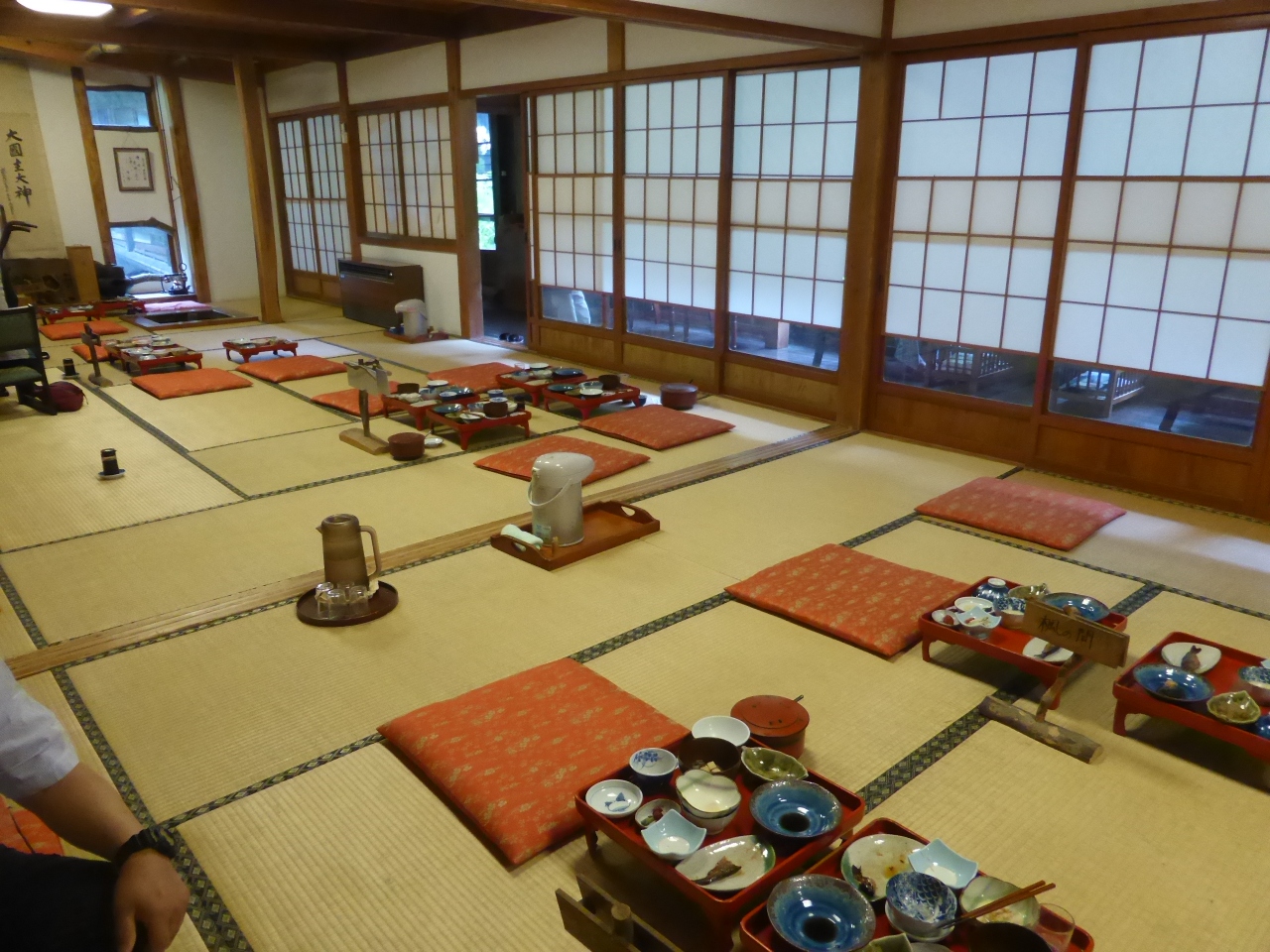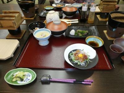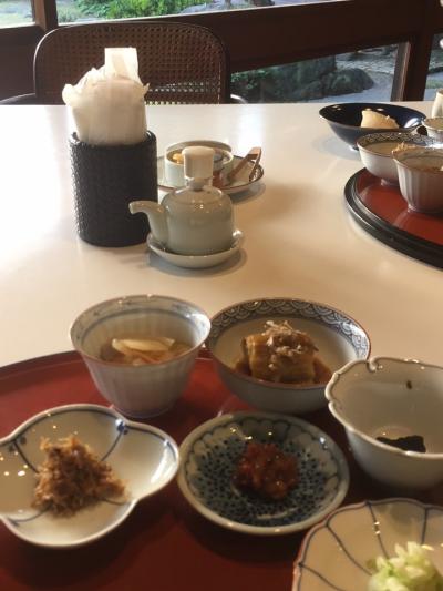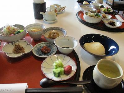 いぶりがっこ入りのサラダ、きりたんぽ、ハタハタ、秋田野菜が印象的、味つけは濃いめです。食器のグレードが高いです。他のお部屋は不明ですが、客室は和のテイストと洋のリビング、ソファーが不思議にマッチしてラグジュアリーです。全室1階なのと露天風呂付きなので眺望は無かったです。