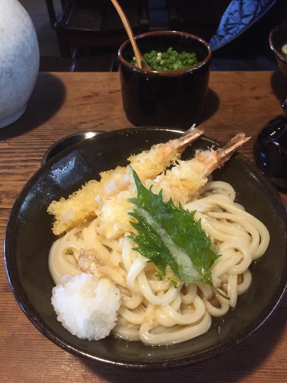 釜揚げと天ぷらうどん、美味しくいただきました。お値段も観光客向きです。- 旅行時期