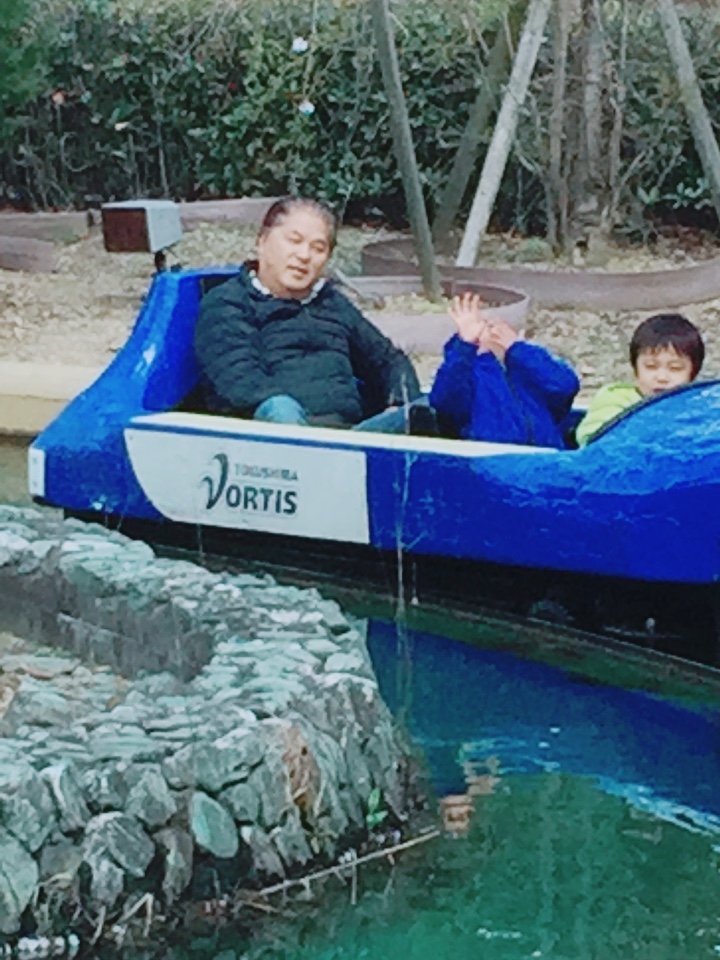 フィールドが広いのでいろいろな遊具を持ち込んで遊ばせたりも出来ます。バドミントンやボールで遊んでいました。吉野川と銘打って、川下り、川上りも出来ます。有料ですが、プラネタリウム、科学館もあります。丘の上に風車が見えました。植栽、花壇の手入れが行き届いています。一部山林の手入れと言うべきですか。