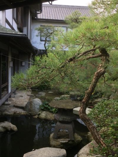 朝食は松がみごとな庭園を臨む食事会場でいただきました。
