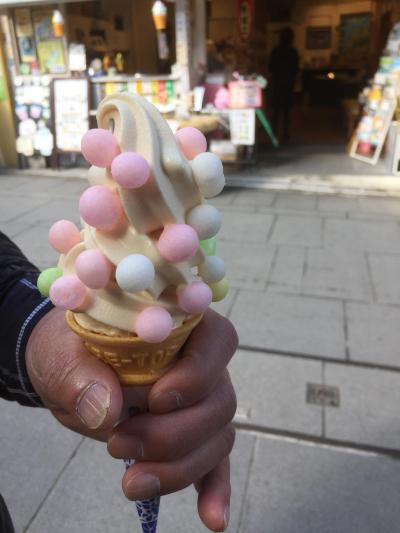 中野うどん学校は参道左側、ソフトクリームは一階売店にあります。- 旅行時期