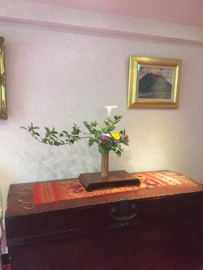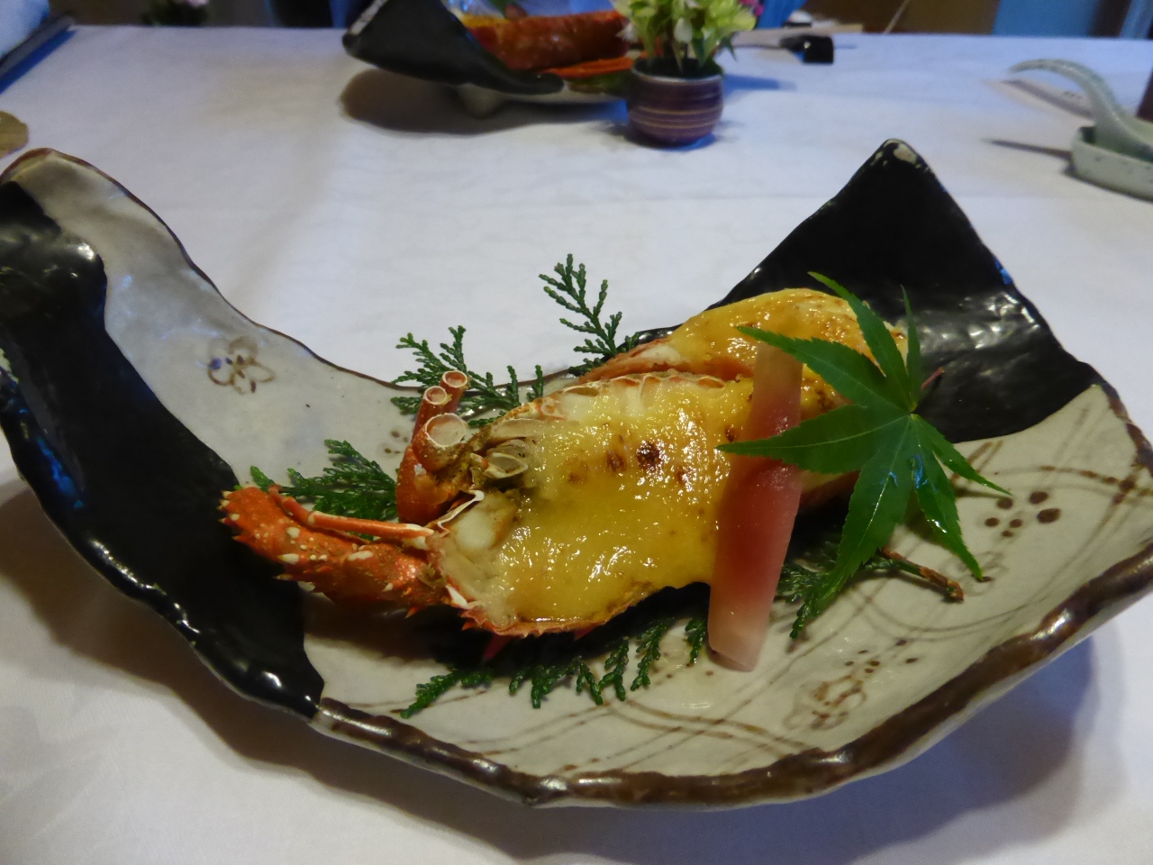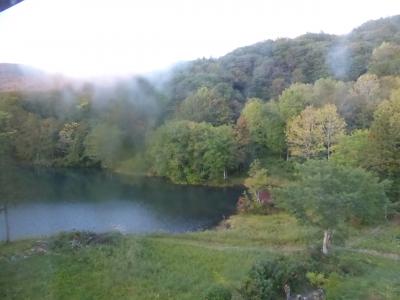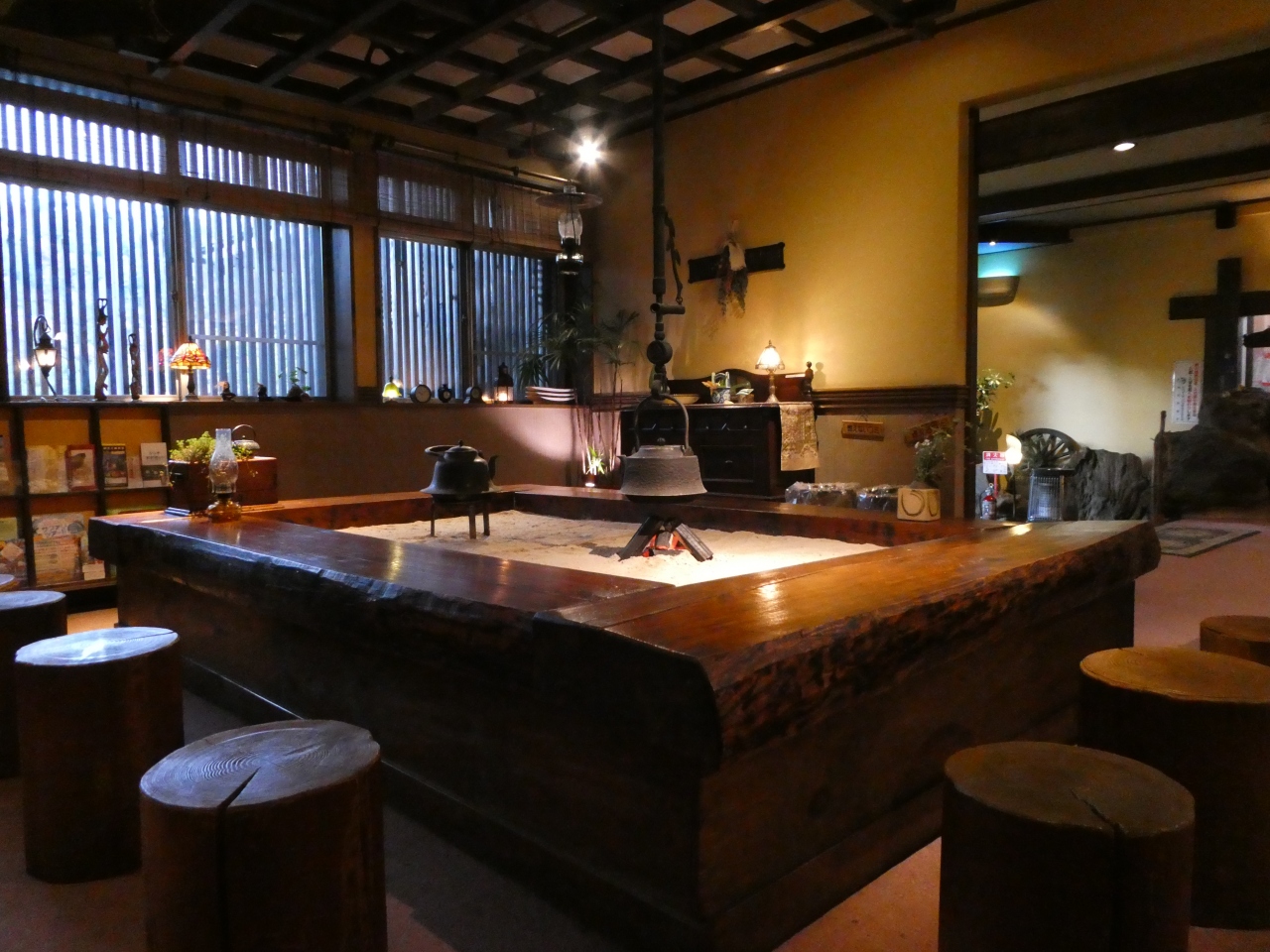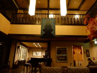 廊下にはパッチワークが飾られ、和ダンスがいい味をだしています。お花もそこここに生けてあります。温泉は露天は少しぬるく内湯は気のせいかもしれませんが、カルキ臭がしました。食事は1階の食事処でします。山菜や鮎の塩焼き、イモ煮など地方色を生かしたメニューが並びます。楽しみにしていたイモ煮は、さといもの味が染みてなくてとても残念な超薄味でした。食事が済んでロビーのソファーにいたら10分くらい携帯電話で話し中の女性がいました。