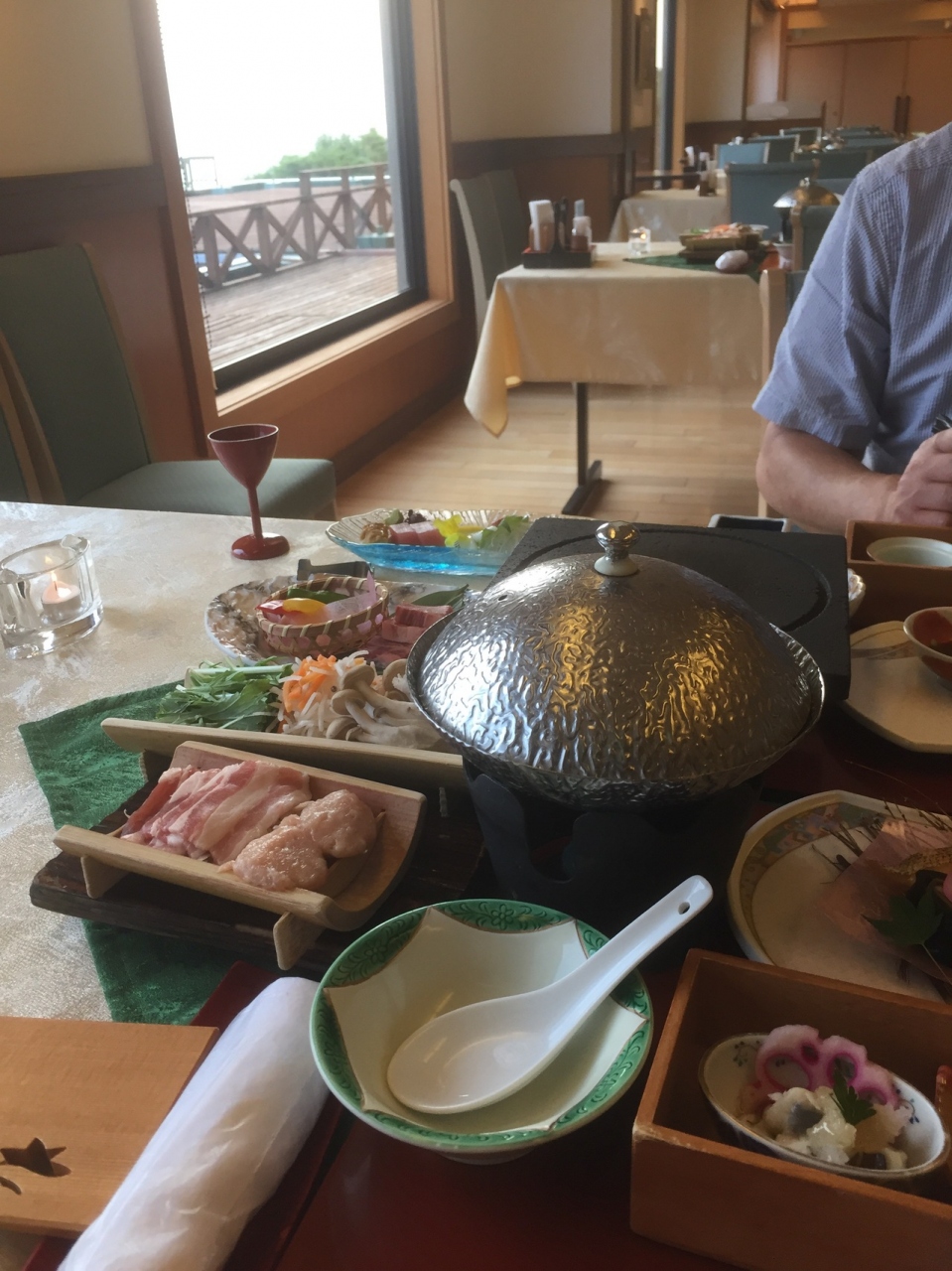 運良くキャンセルが出たそうで、一か月前の予約だったが、赤松の湯を早朝貸しきることができた。木立ちの中で蒼く白い温泉♨は掛け流しで素晴らしかった。古い建物を大切にしてリフォーム、清潔に保っていてリラックスできる。絵画やお花がかざられていてる。食事は新鮮でおいしくて、郷土色豊か。リーズナブルな価格で随分と努力しているのではと感じる。眺望、接客、宿泊前の案内メールなどの気配り全て素晴らしかった。