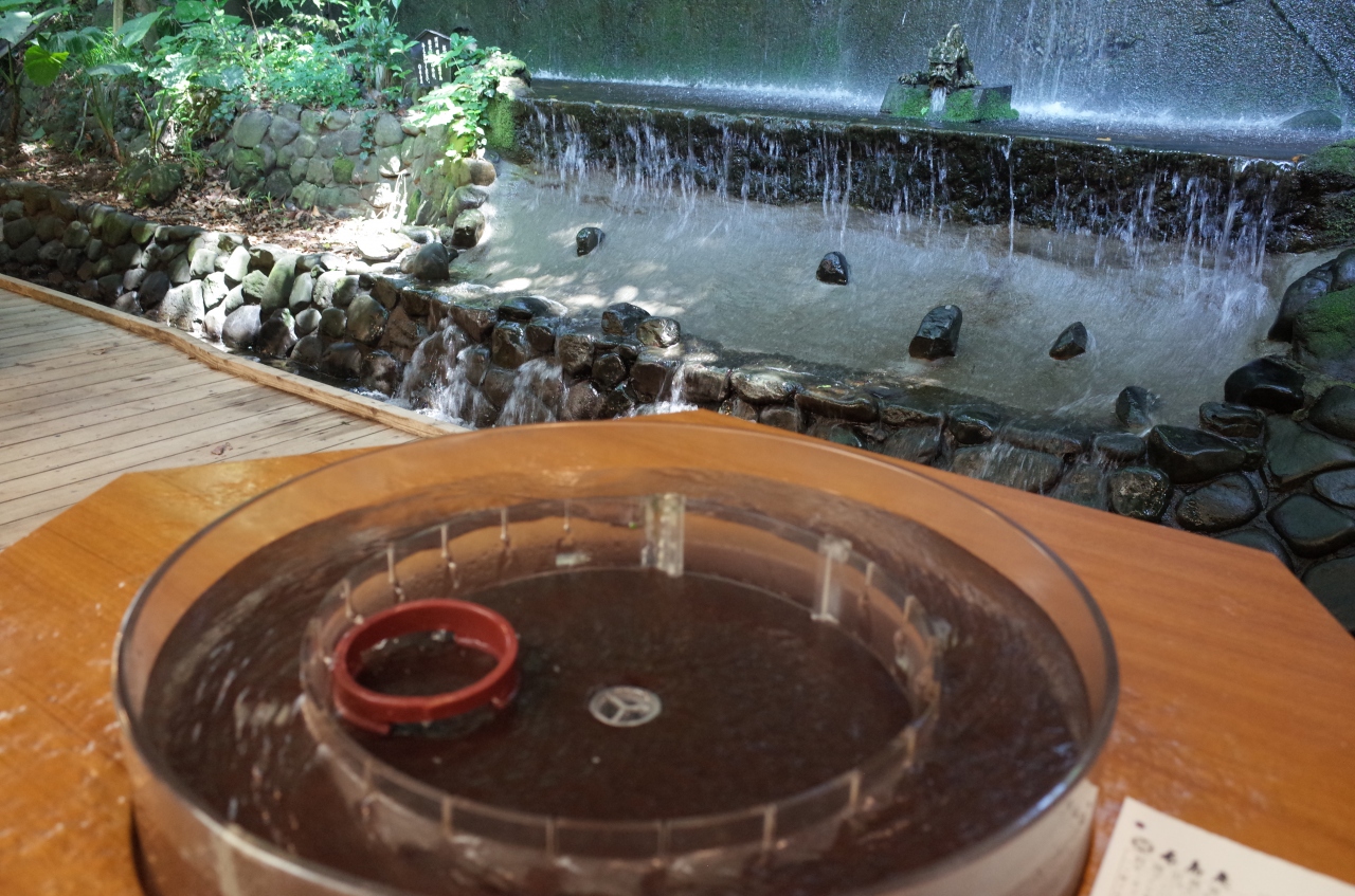 開聞岳観光後、池田湖へ行く途中に立ち寄りました。岩を流れ落ちる水がまるで滝のよう、涼しいです。