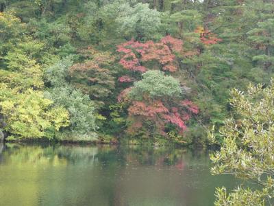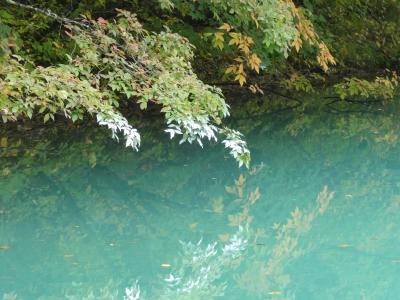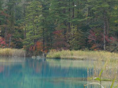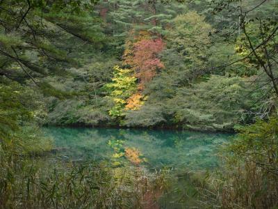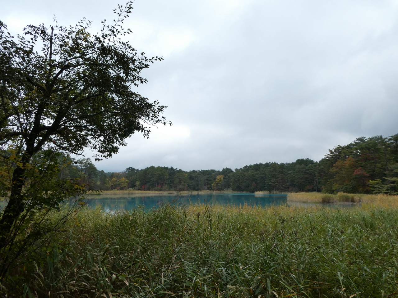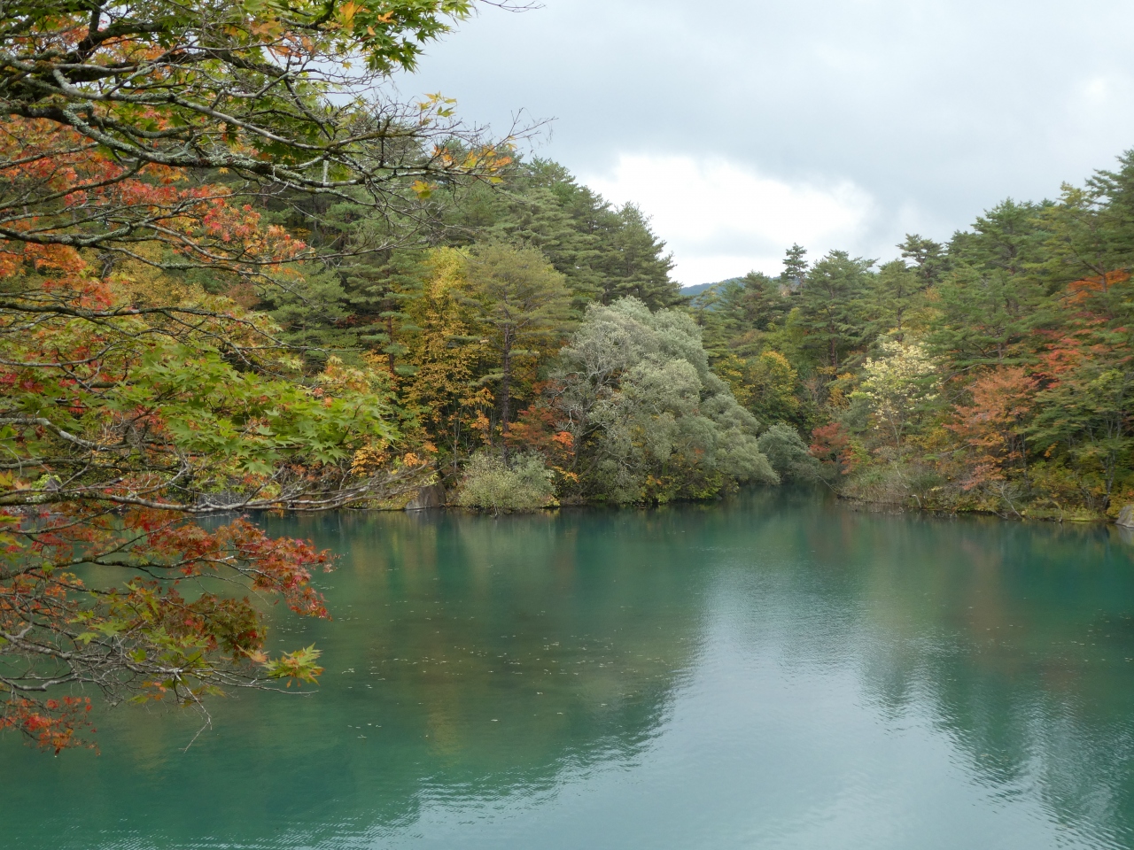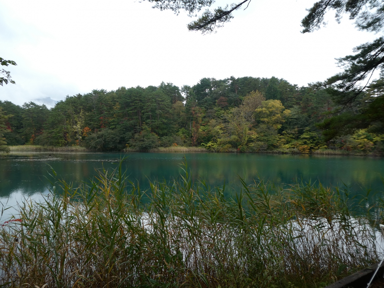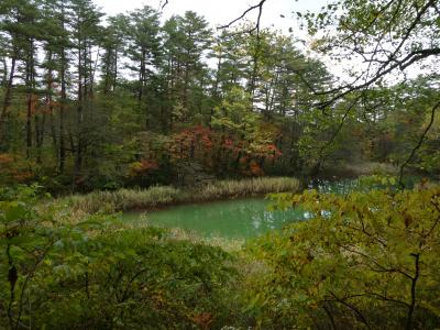 池は思っていたほど近くなくて、拍子抜けしましたが、所々展望台があり、少し高いところからコバルトブルーの池を眺めます。染まり初めの紅葉も見ることが出来ました。ぬかるんだ所がありましたが、スニーカーで歩けます。