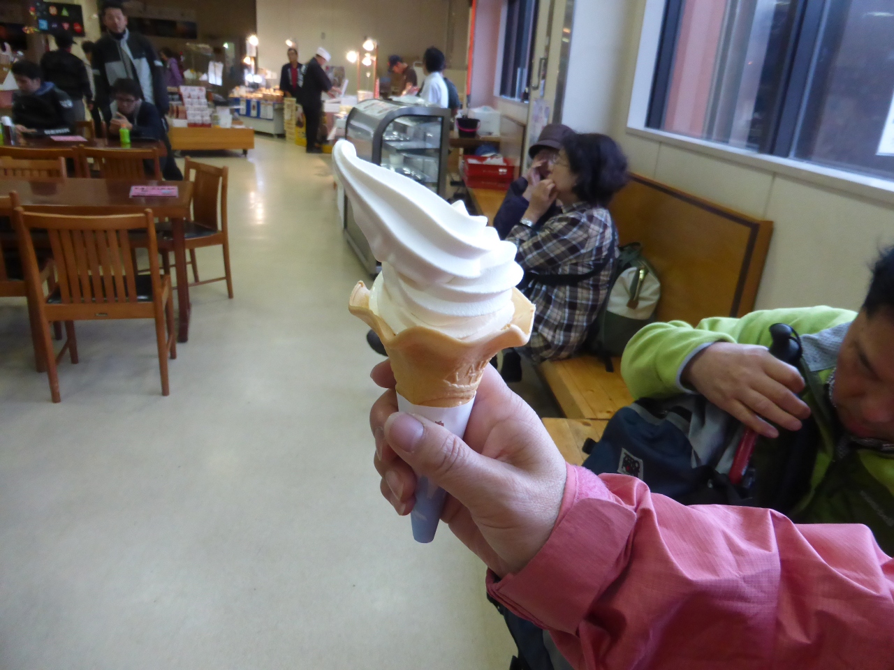 安達太良山周辺は酪農が盛んなようなので、福島の乳牛のミルク使用だろうとソフトクリームを購入しました。美味しかったです。レストハウスは大勢の観光客で、混雑していました。