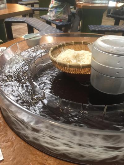美味しい水の中でそうめんが回っています。そうめん以外にお寿司や川魚の塩焼きなど色々ありました。夏に向かって、特にお薦めの食事処です。- 旅行時期