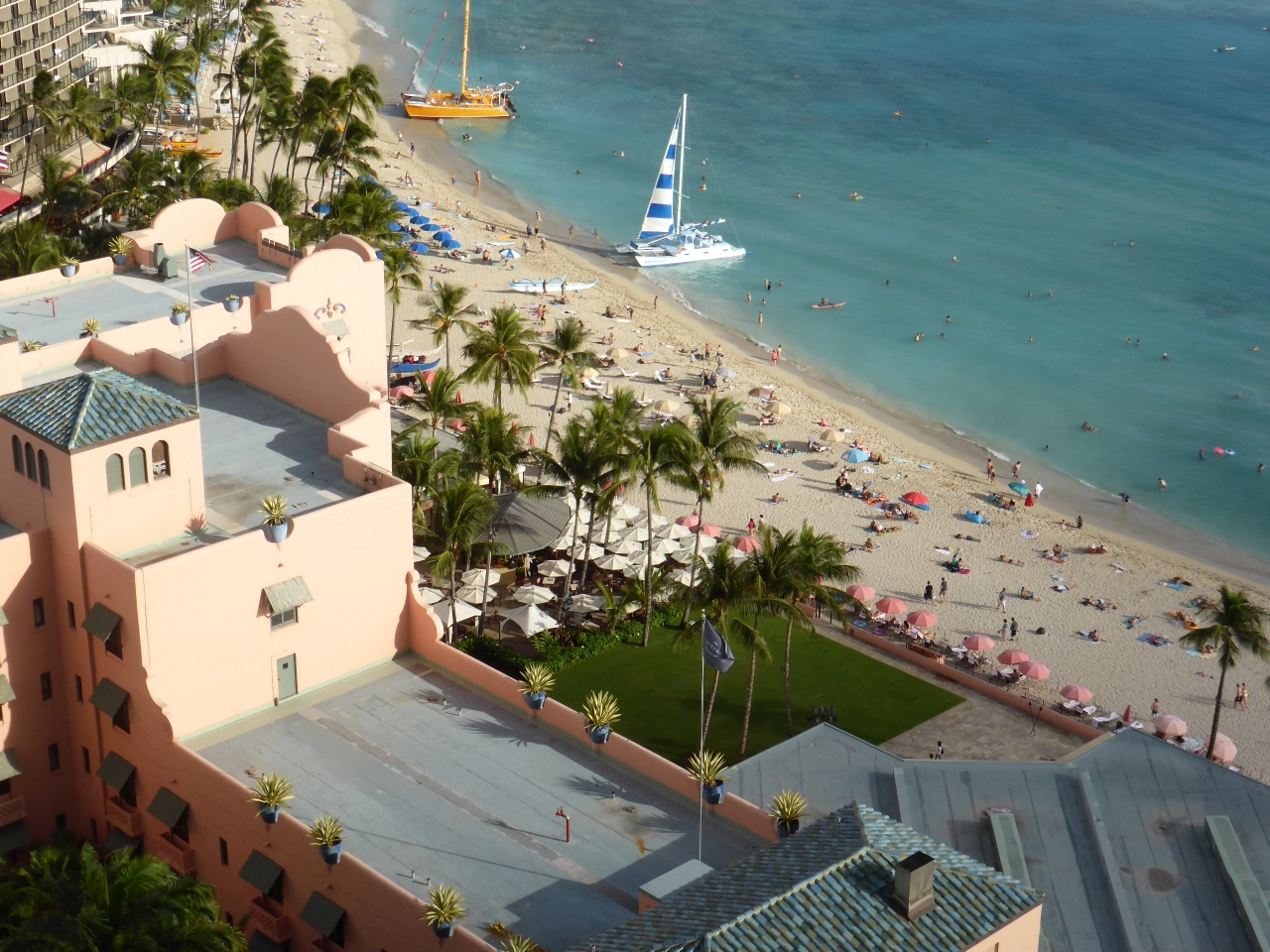 何処へ出かけるのも便利な立地です。買い物、食事、オプショナルツアーの出発、ワイキキビーチ、ど真ん中のホテルです。ダイヤモンドヘッド側27階から見下ろすワイキキビーチは、夜になっても散歩する人の姿があります。夜景はとっても素敵です。ハワイは3度目です。シェラトンが一番の立地、ロケーションだと思います。
