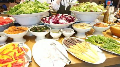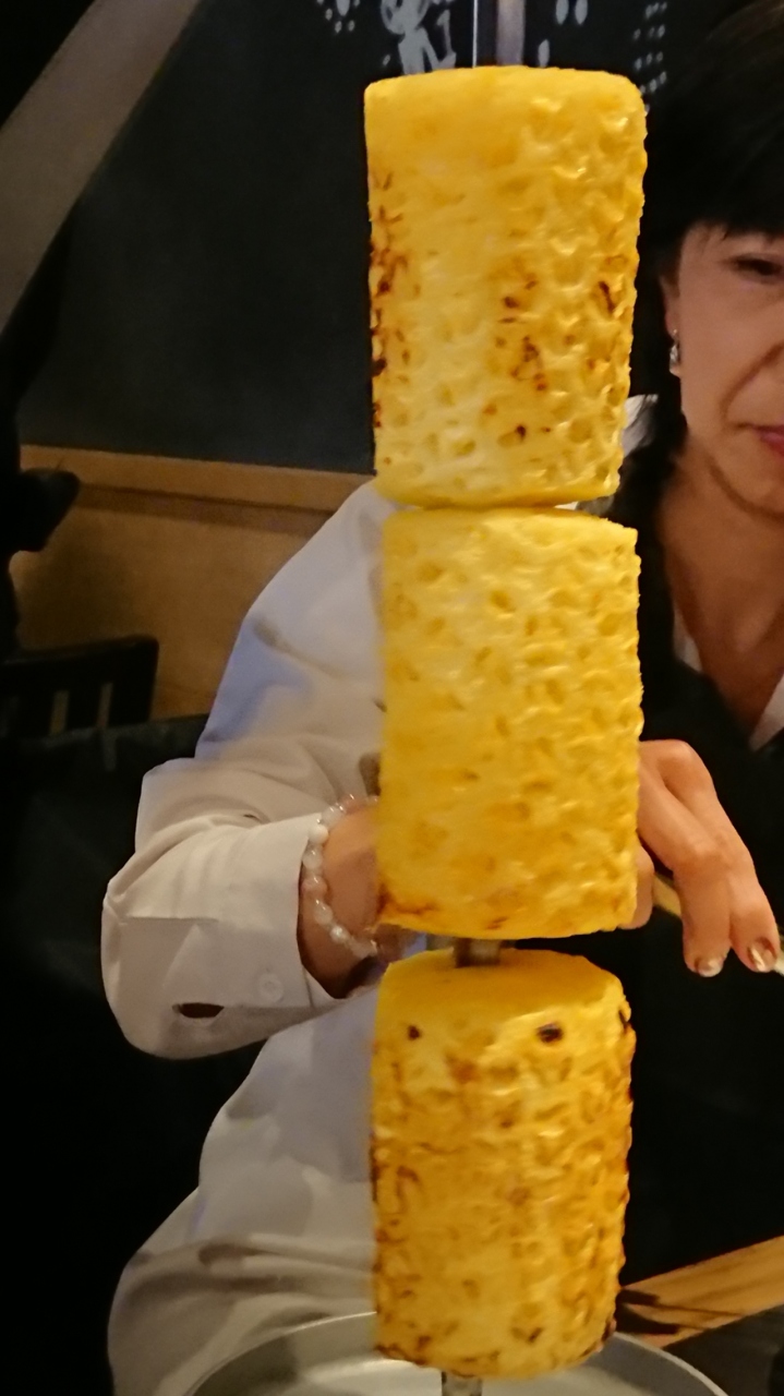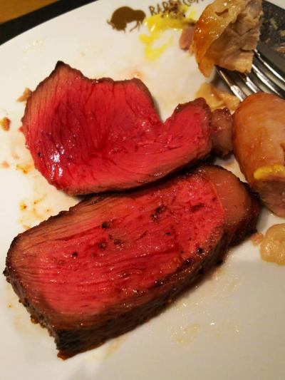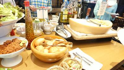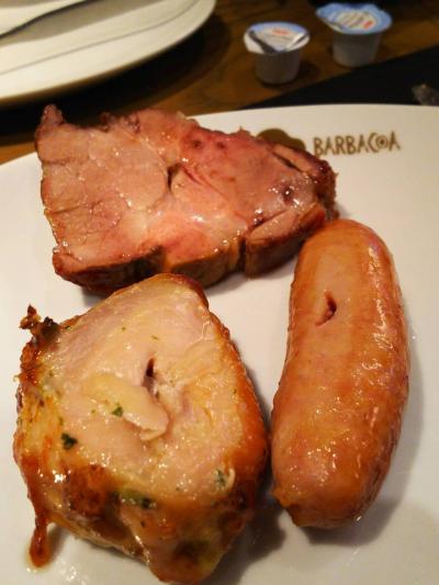 まずはサラダをいただきましょ。頃合いをみて、合図の札を返すと、次から次とお肉やソーセージ、パイナップルなどが笑顔の素敵な店員さんからサービスされます。