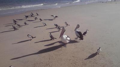 カンガルーはその辺に寝てますし、ちっちゃいペンギンたちは、かたまって付いて来ます。