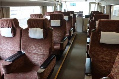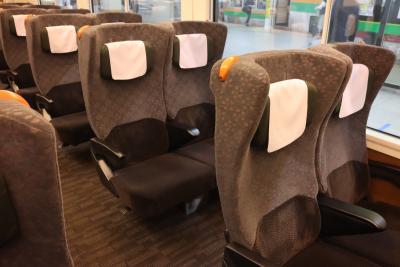 グリーン車は、2+2のシート。コンセントあり。普通席との違いは僅かで、グリーン料金を払うメリットがあるかどうか・・・まあ、ゆっくりはできますが・・・