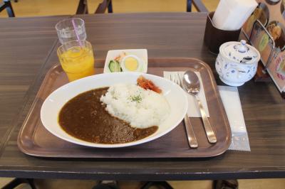 昼食はカレーを。セルフ方式。パスタなどもあるが、食事メニューは限られる。