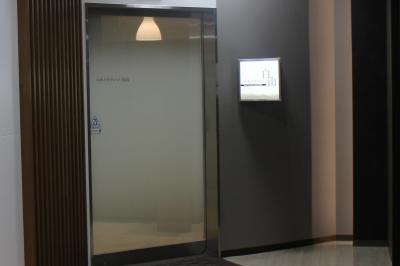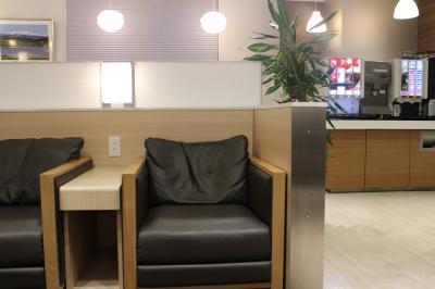 ラウンジの規模としては狭く、寛げる場所ではないが、内装、インテリアに配慮されていて気持ちの良い空間になっている。