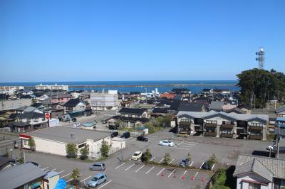この日、店内は空いていたが窓側席は先客あり。新潟空港で食事をする場合はチェックしておきたい食事処の一つ。- 旅行時期