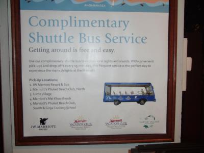 タートルヴィレッジとマリオット系列ホテルを走るシャトルバス案内