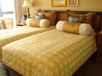眺望:シティービュールームに泊まりました。シティビューというよりシェラトンビューでしょ・・・。というくらいシェラトンの建物がズドンです。オーシャンビューもシェラトンとハレクラニの間に見える海だと思いますので、このホテルでオーシャンビューを指定するなら海に面したホテルにしたほうがいい気がします。