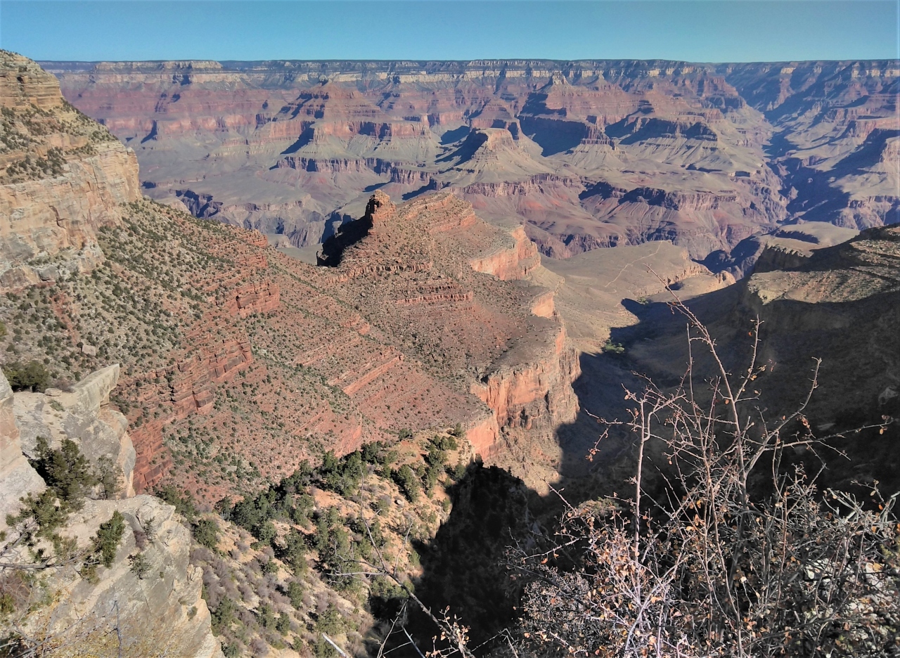 今回はバスツアーで再訪した。43年前にはグレイハウンド・バスでやってきて、ここに一泊し、午後から宿泊し、翌日午前中にかけて滞在したので、様々な太陽光線と大峡谷の光と色彩の変化を楽しんだものだが、今回は、午前中早い時間のグランド・キャニオンを楽しんだだけだ。