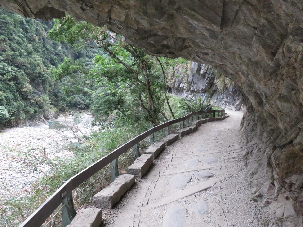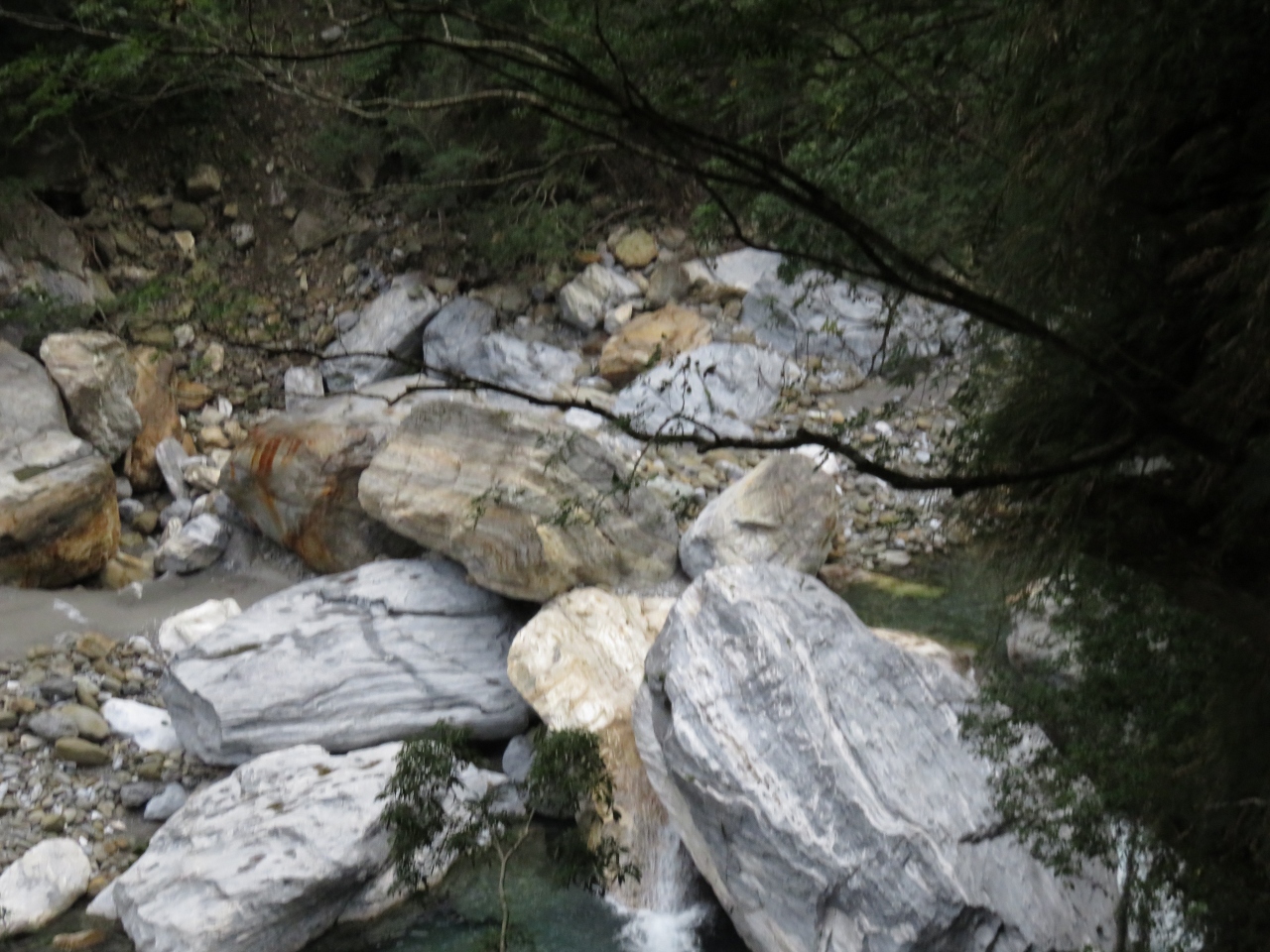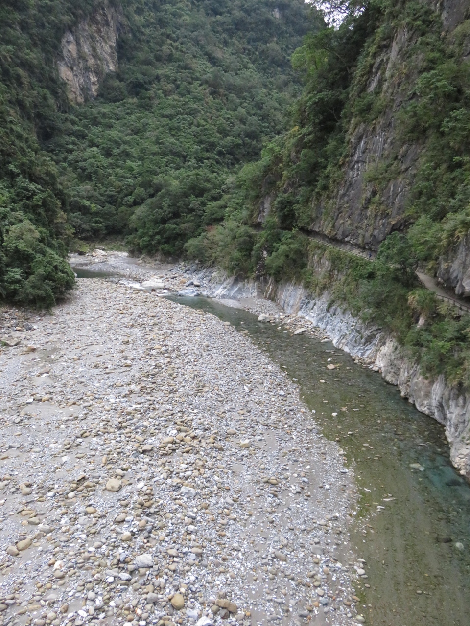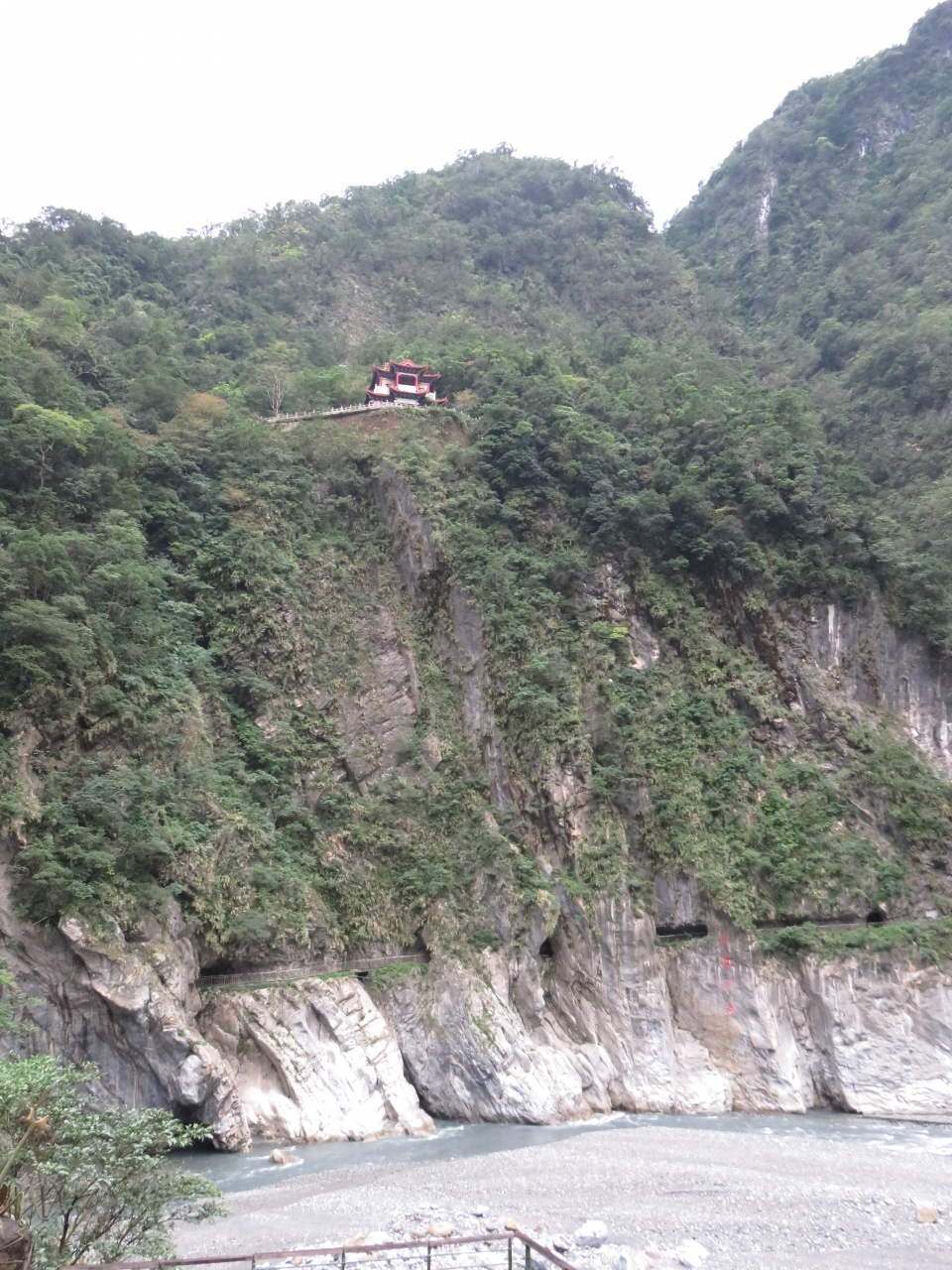 この祠は対岸のビュースポットから眺めたのだが、人口の滝も効果的で白い大理石の岩山や河原が美しい。太魯閣のすばらしい自然美はもっと広い地域にわたるのだろうが、見た範囲でも十分に堪能した。こういうところは自分で来るとなると大変だろうから、あらためてツアーで来てよかったと思った。