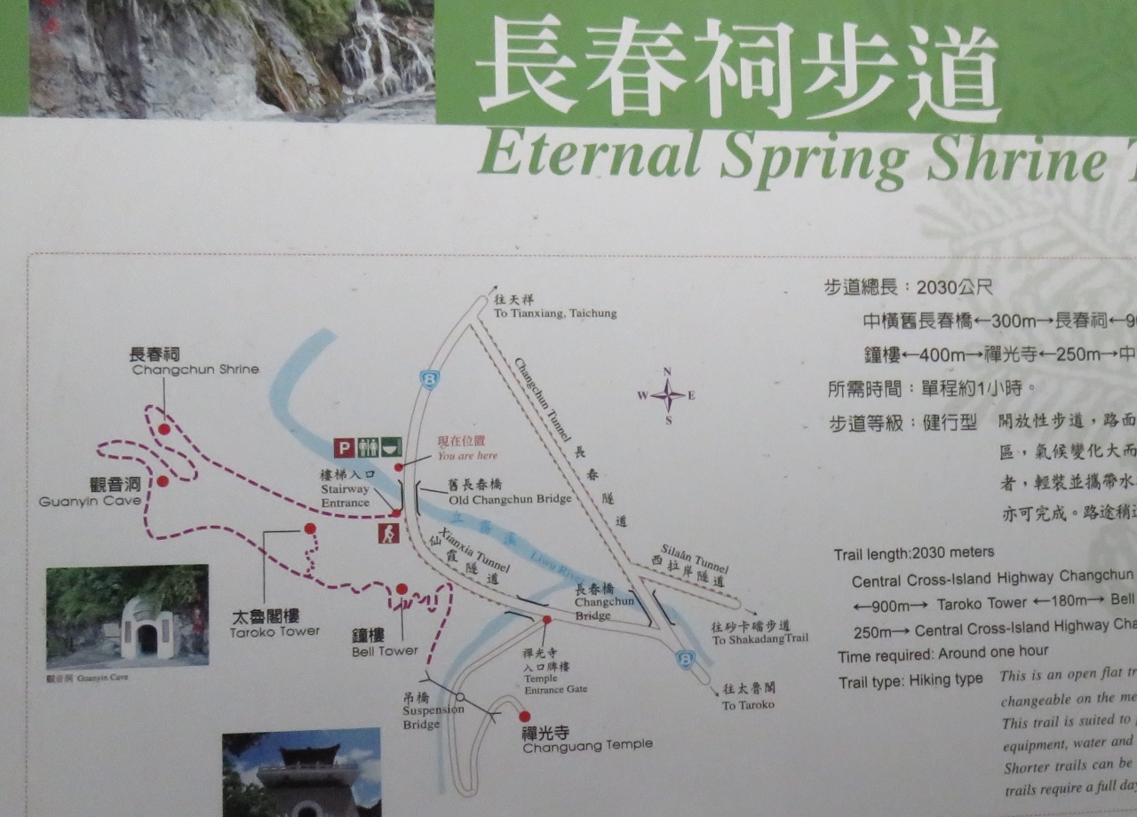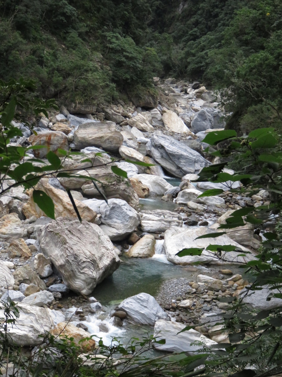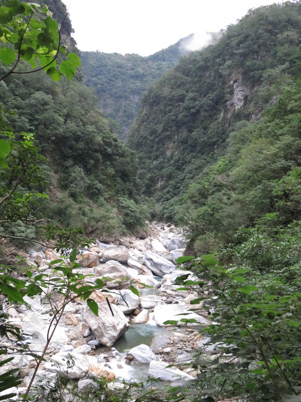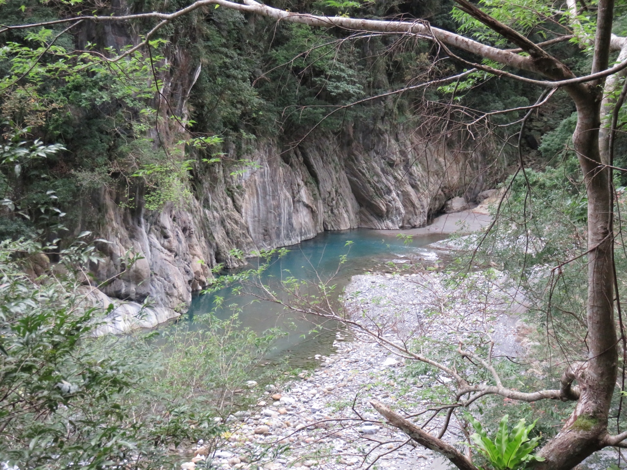 この祠は対岸のビュースポットから眺めたのだが、人口の滝も効果的で白い大理石の岩山や河原が美しい。太魯閣のすばらしい自然美はもっと広い地域にわたるのだろうが、見た範囲でも十分に堪能した。こういうところは自分で来るとなると大変だろうから、あらためてツアーで来てよかったと思った。