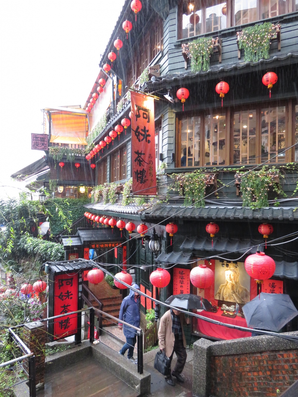 で、押し合いへし合いしながら列をともかく進む。年中お祭り状態のようだ。現地のガイドさんが、事前に宮崎駿の映画「千と千尋の。。」というビデオを上映してくれた。前に見た時、なんでつぎつぎと変なお化けが出る映画だろうかと思ったのを思い出した。その気持ち悪さを思い出したのだが、ガイドさんによると九分の伝説なのだそうだ。現地の方にはピンと来たのだろうが私にはなにが面白いのか理解できなかった思い出がある。台湾の伝説を日本の登場人物とそのまま合成したのだろうか?ま、今度、もう一度見る機会があれば、台湾の九分の伝説を思い出すことにしよう。もう少し理解が進むかもしれない。台湾の人に愛されている映画ならそれでよしとしよう。