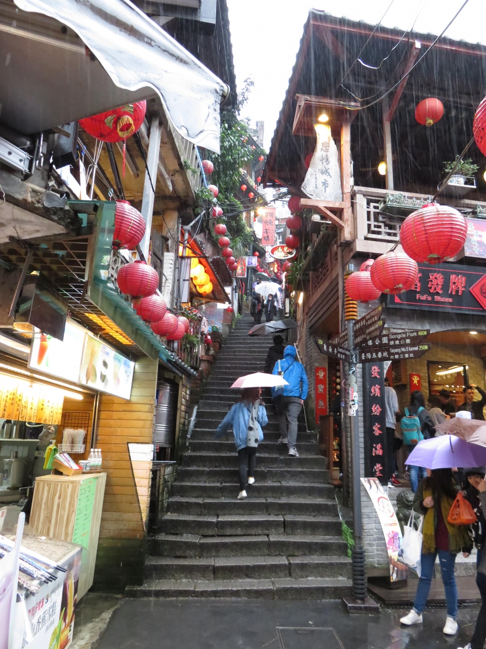 台湾ツアーの観光の締めくくりがここになった。生憎雨が土砂降り状態!前日、花蓮の100円ショップで買っていたビニールのレインコートが役立った。足が出ている下のほうはずぶぬれだった。よくここは雨が降るのだそうだ。