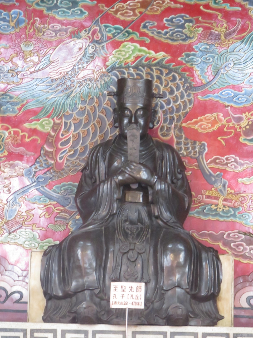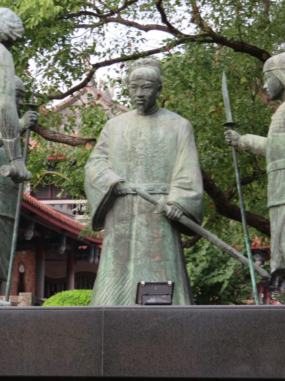 鄭成功は中国本土で戦っていたが、1661年に台湾へ向かい、台湾を占拠していたオランダ人を追放するも翌年1662年に死去した。台南のこの赤崁楼では、その鄭成功の前で首を垂れるオランダ人の像が見られる。- 旅行時期