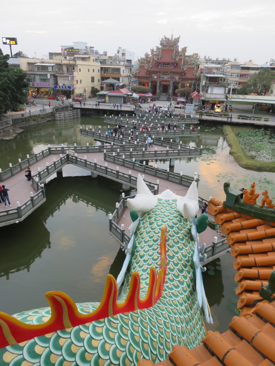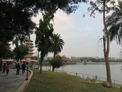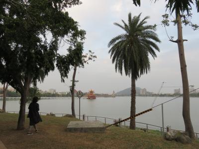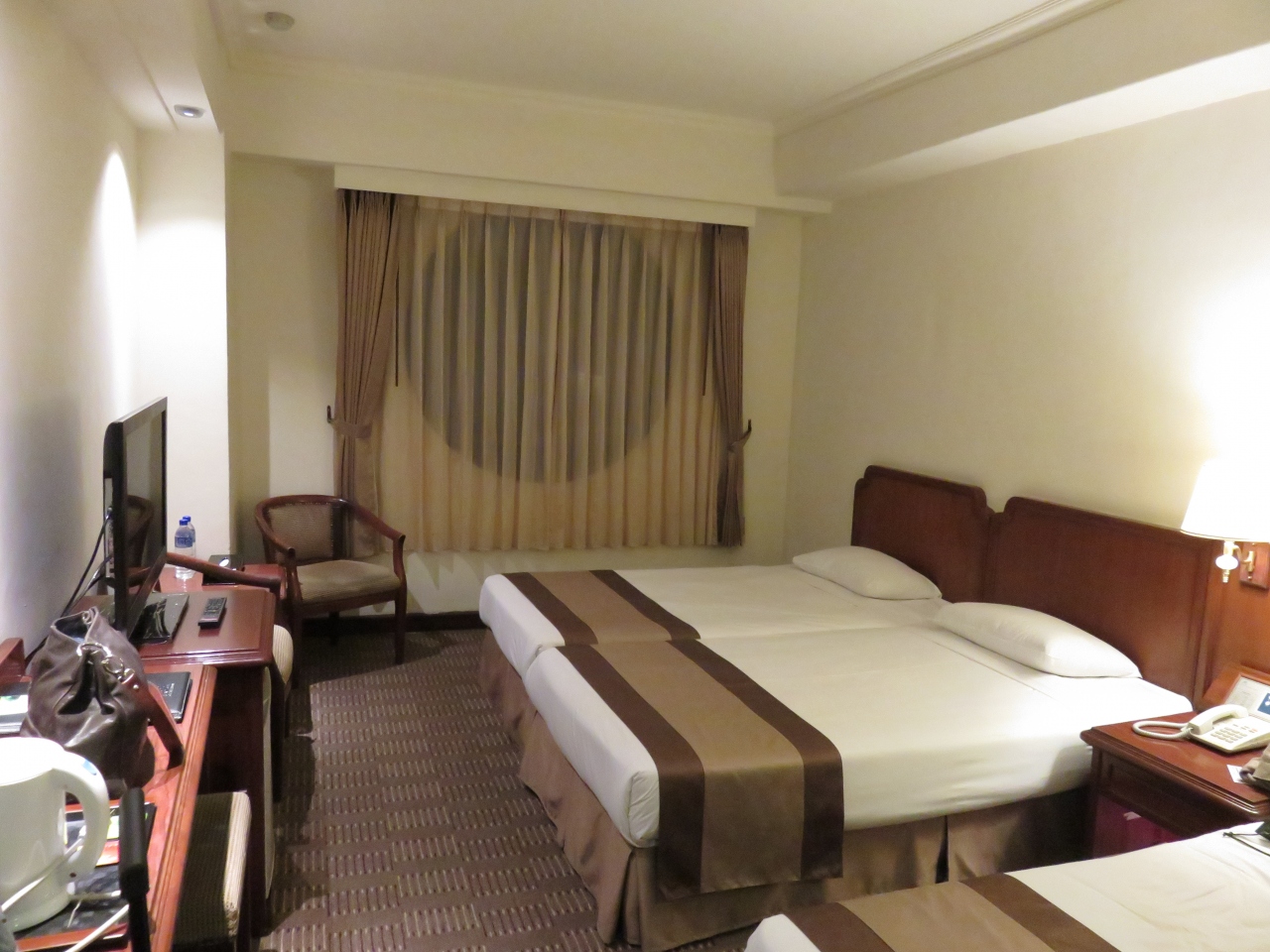 ツアーで利用した。台北から故宮博物館を見物した後、バスで移動して時間も遅くチェックインしたので、夜は出歩かなかったが、朝は近辺の散歩をした。ガジュマルが両側に植えてある川の傍まで近い。現地の散歩中のご婦人としばし英語で語らう。なお、ガジュマルは台湾各地にあったが、現地ではロウスーと呼んでいるそうだ。漢字を教えていただくと木偏に客という字を加えたものがロウで、樹をスーと発音しているそうだ。以後はガジュマルと言わないで、ロウスーと呼ぶことにした。なお、ホテル前の道路はモノレールの工事中だ。