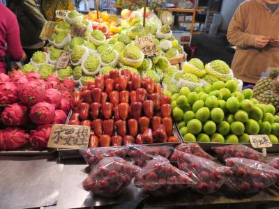 果物各種。特に釈迦頭という果物は美味しい!今回滞在中に何度か食べたので忘れないだろう。からすみも日本より安く入手できたし、志那竹も美味しいものは絶品だ。黒い皮のピーナツも味が濃くて美味しい。また、高粱酒も久しぶりに購入した。昔から中国文化圏では高粱酒が気に入っているのだ。特に58度のものがお気に入りだ。- 旅行時期