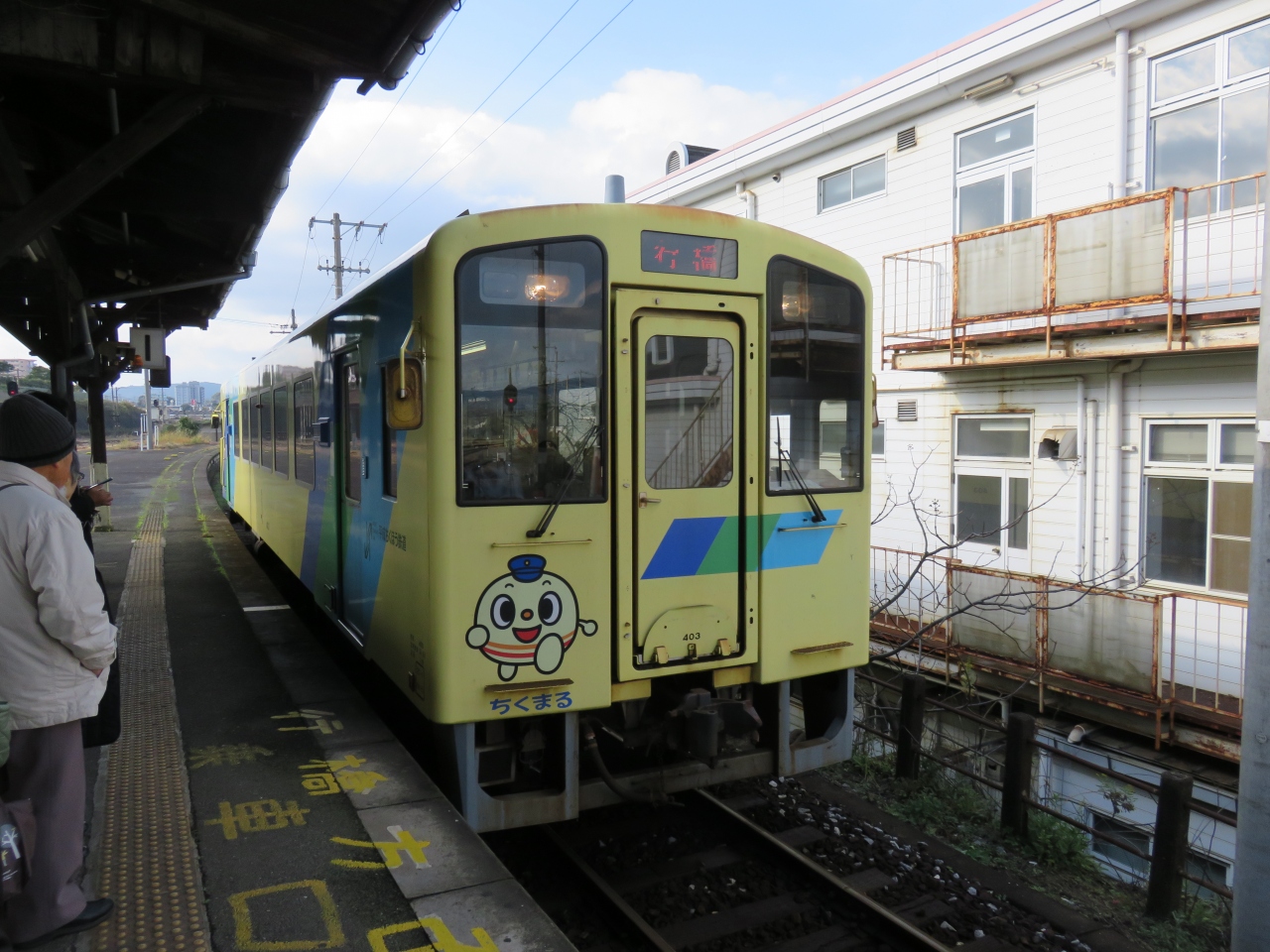 田川伊田駅で乗車した後、28分後にここに到着した。初めての路線を経験した。駅舎内は巨大な飾りがあった。一両編成なので、バスと同様の下車となる。福岡県で長年仕事をしていたが、こちらの方面に来たのは初めてだった。面白いバスツアーに参加したお陰だ。