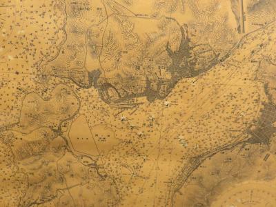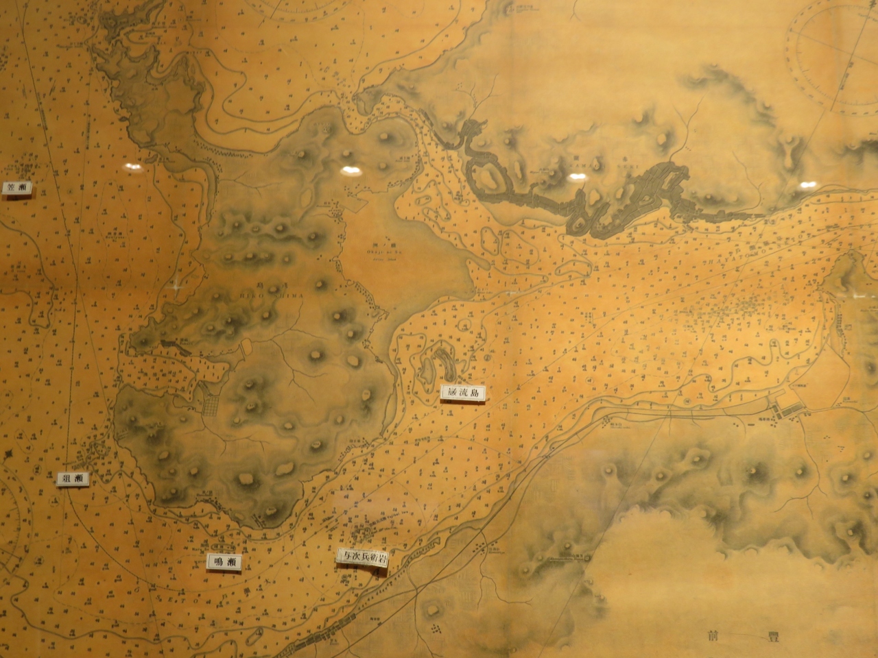 関門海峡周辺の各種の海図が面白い。深度が記入されていて、関門海峡は狭いだけでなく、あまり深くないことも古い海図でわかる。新しい地図ではだんだん浚渫されて深くなっているのがわかる!10と記入されているのは6尺の10倍で16mの深さだ。これだけあれば、15万トンクラスの船が通過できるそうだ。館員に教えていただいた。
